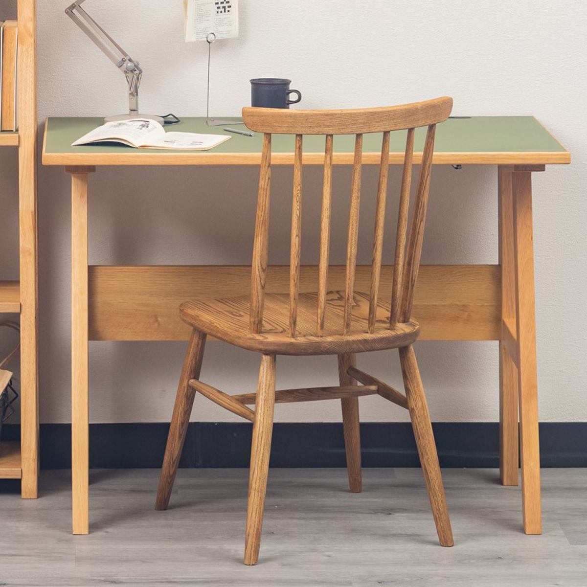 Aラインの脚を採用した美しいフォルム。リビングやダイニングに馴染むデザインに仕上げました。使い込む程に味が出てくる天然木の質感、飽きのこないシンプルで機能的なデザインのワークデスクです。