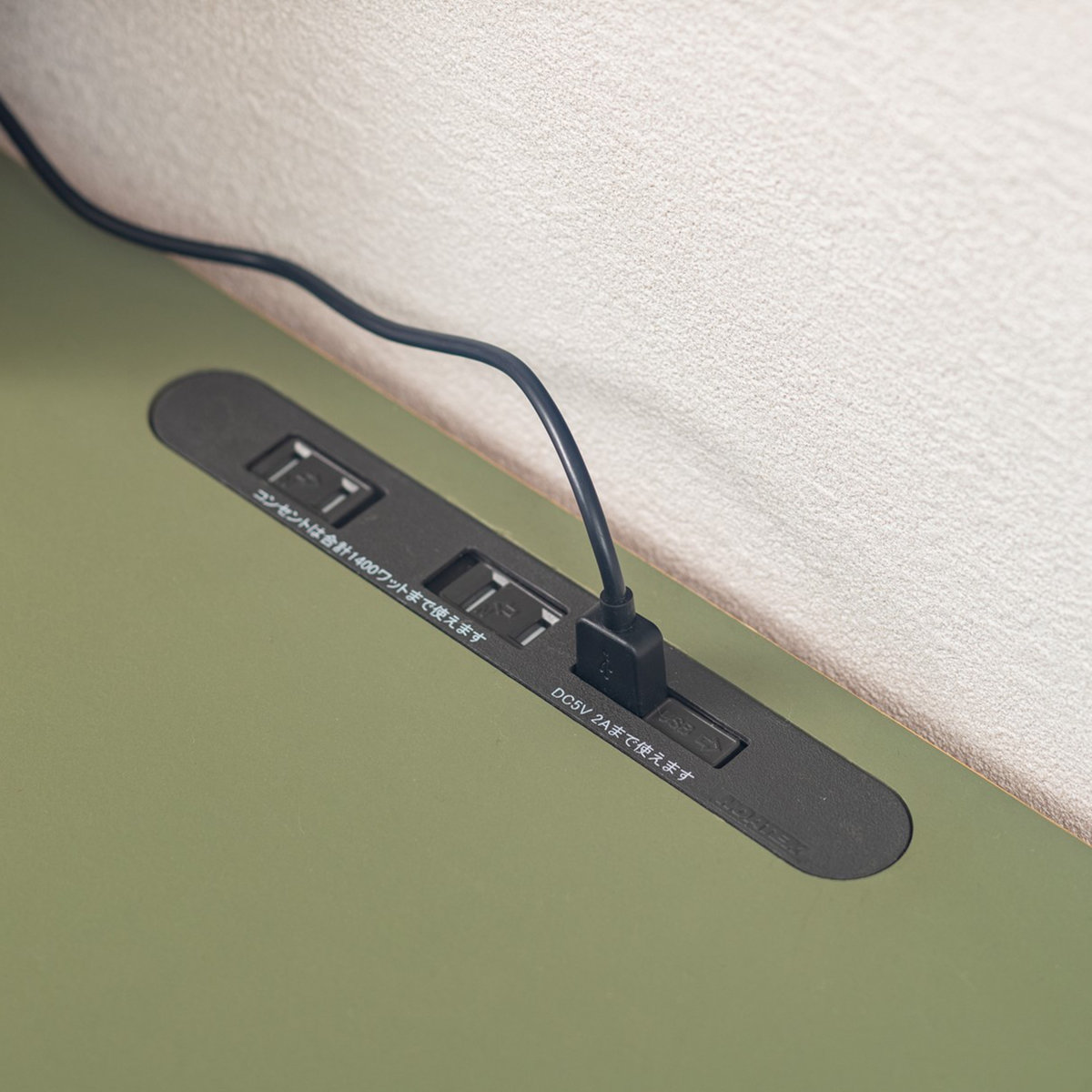 2口コンセントとUSBポートが付いています。スマホやタブレット、PCでの作業も快適です。