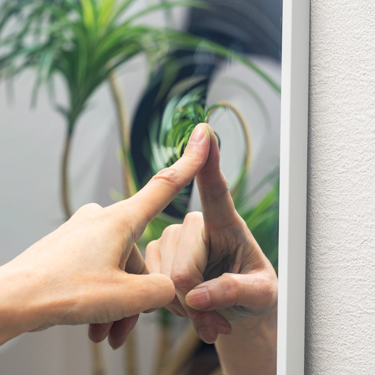 4層構造にしたポリエチレンテレフタレートの高性能フィルムを使用したミラーです。ガラスを使用していないため割れることがなく、小さなお子様がおられるご家庭でも安心してお使いいただけます。