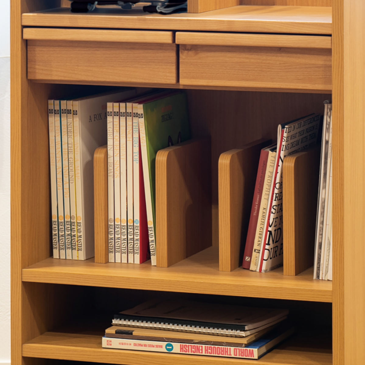 ブックラックには教科書や絵本などを立てて収納できるので、片付けがしやすく探しやすいです。