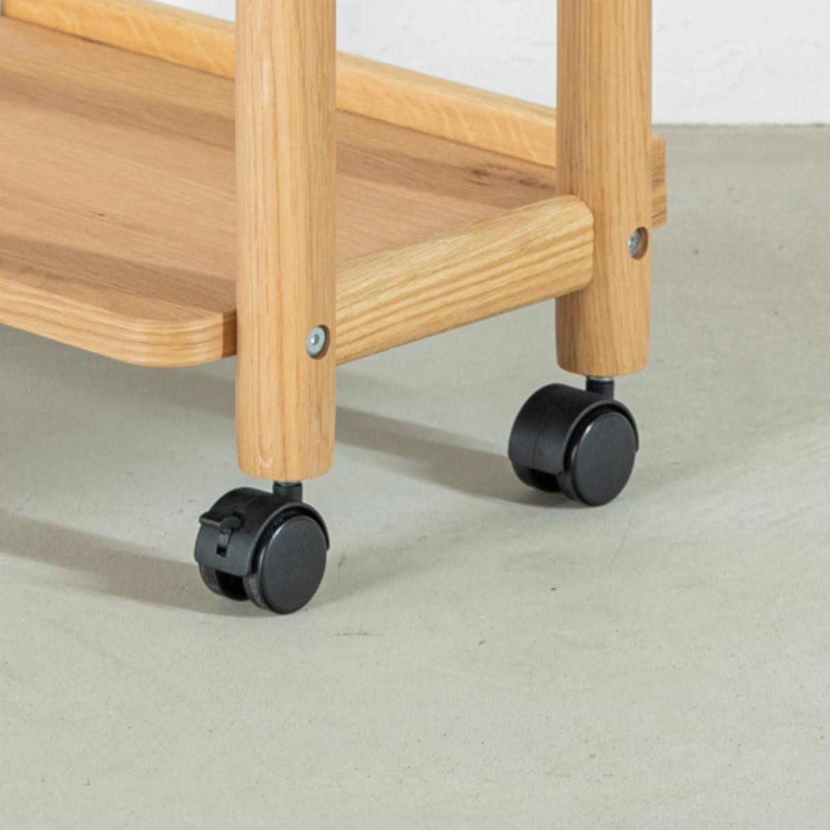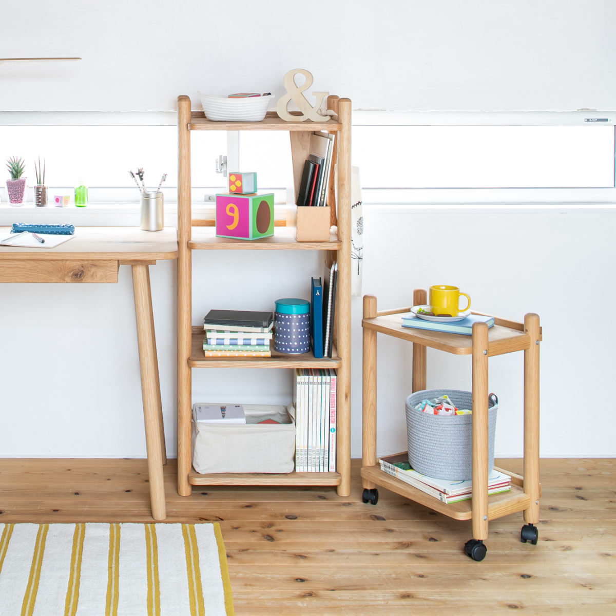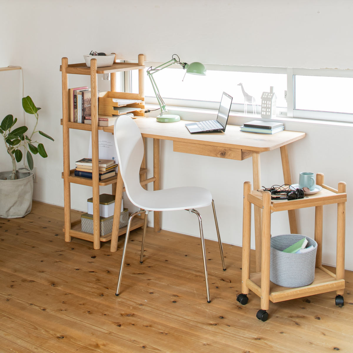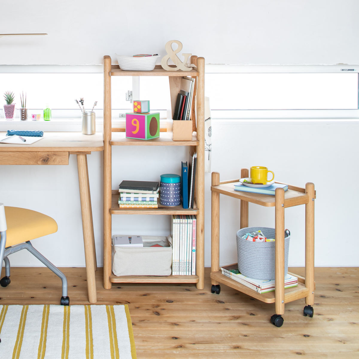温かみのあるオーク無垢材を贅沢に使用したデスクワゴンです。ランドセルと学習教材などをまとめて置くことができます。シンプルなデザインのため、年齢や性別を問わずお使いいただけます。