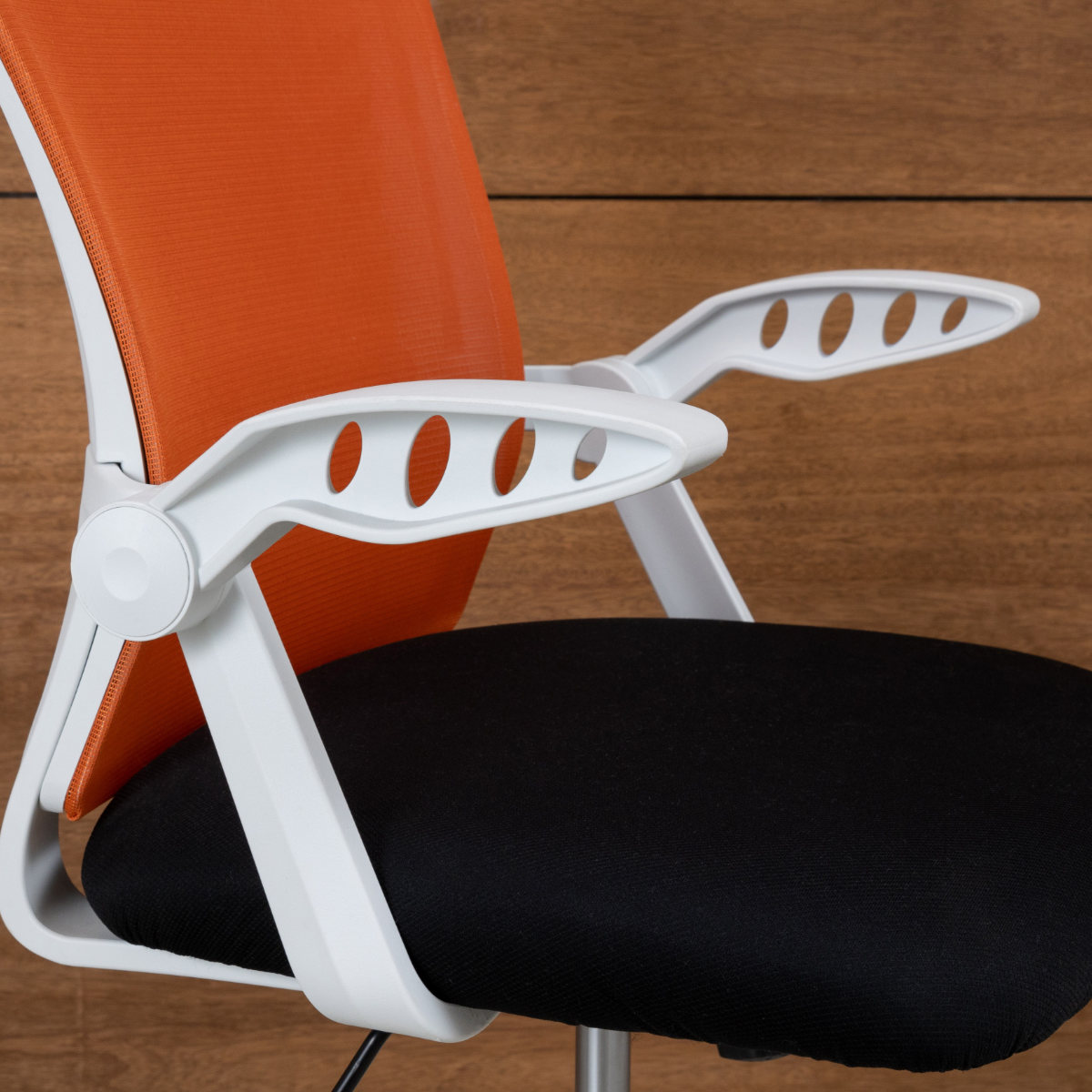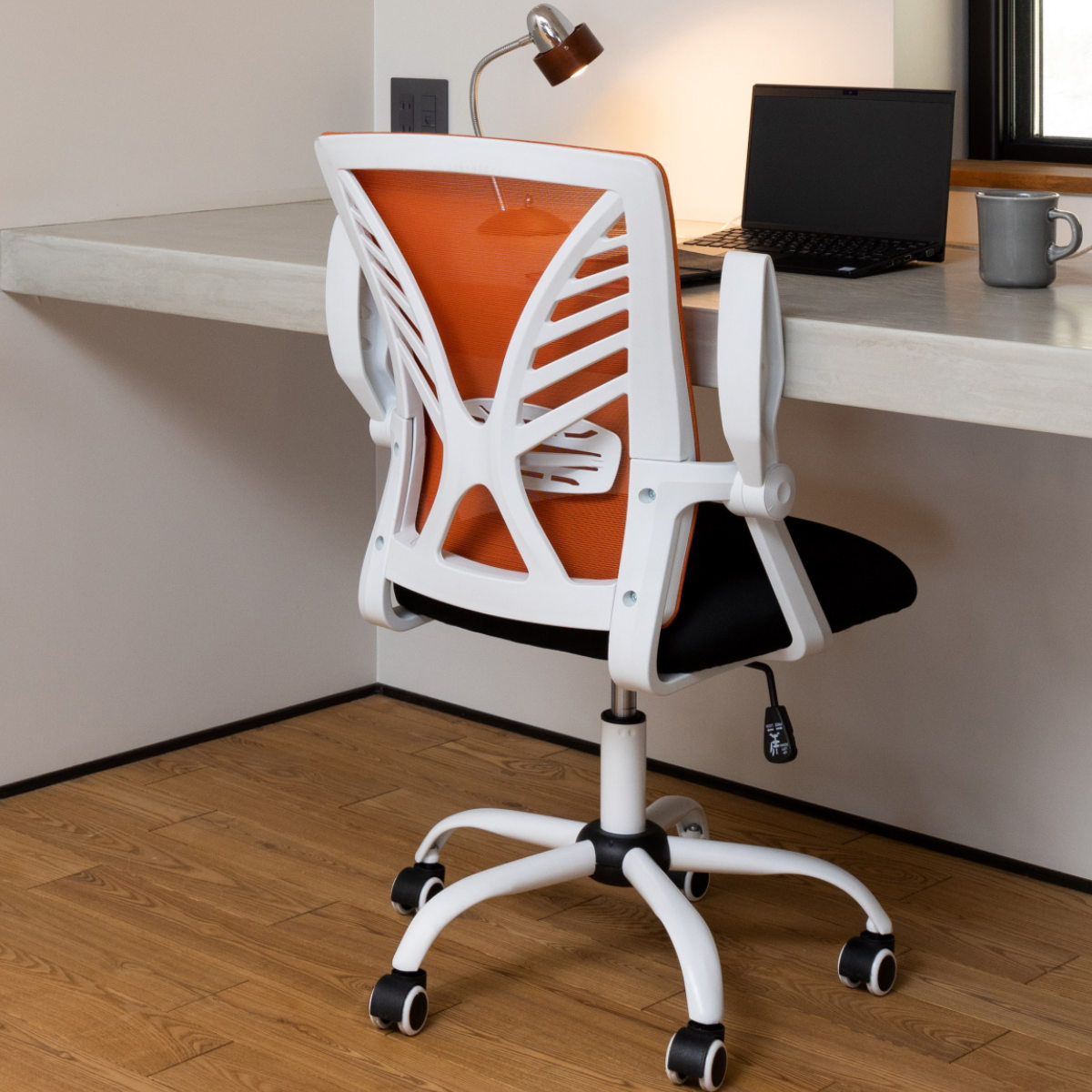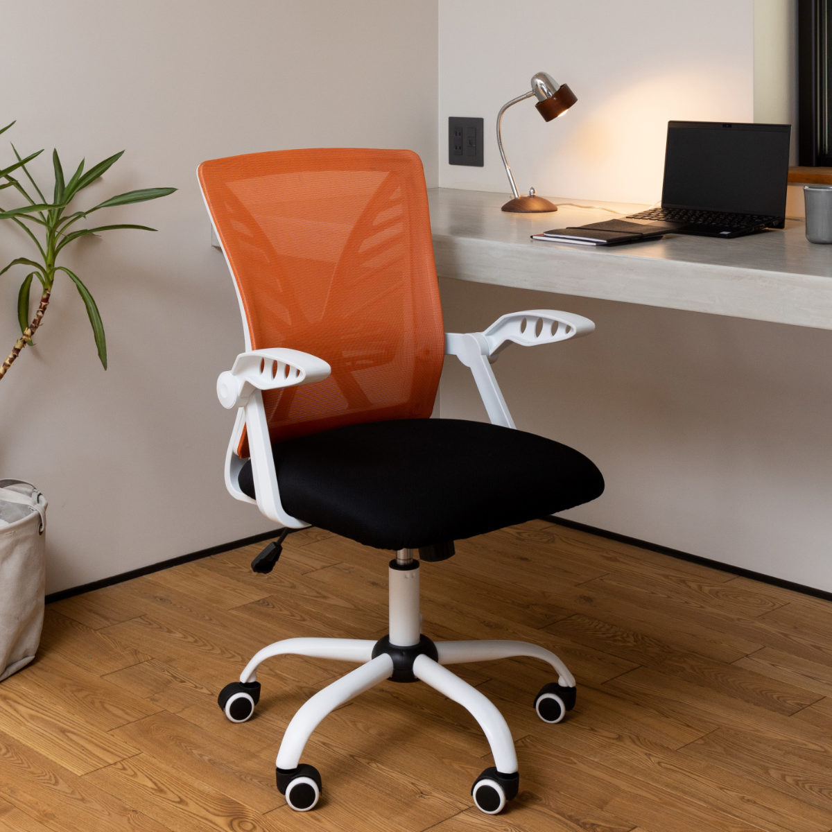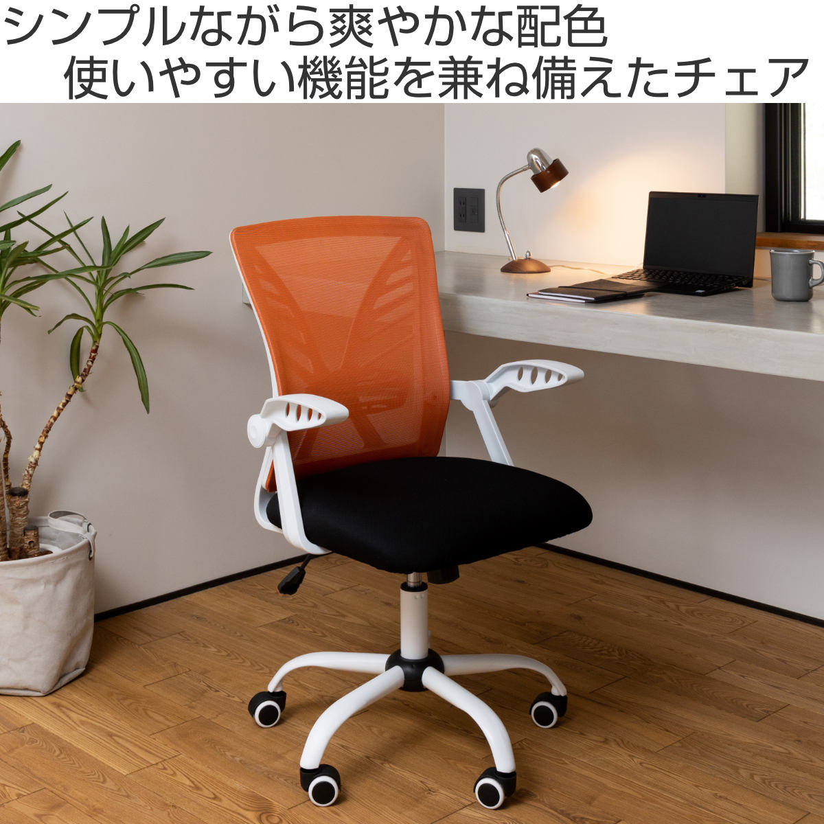 オフィスチェア メッシュ 肘付 昇降式 座面高47~55cm アンキ ( ワークチェア パソコンチェア 肘掛け 跳ね上げ式 デスクチェア ランバーサポート付き 高さ調節 キャスター付き PCチェア チェア イス オフィス シンプル 仕事 学習 ) 【オレンジ】
