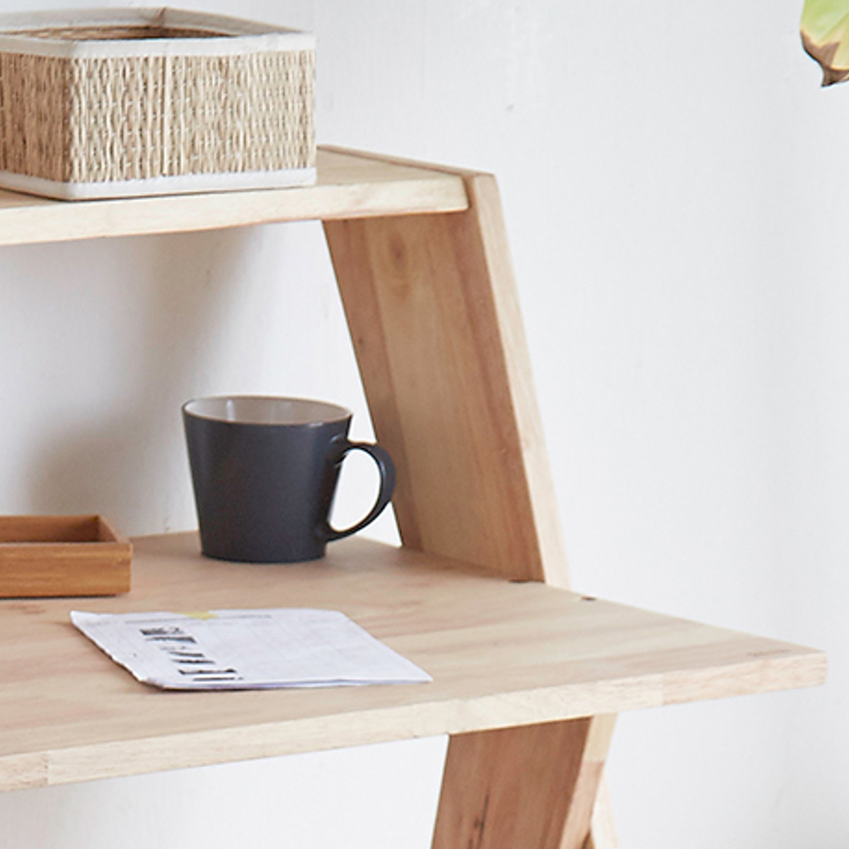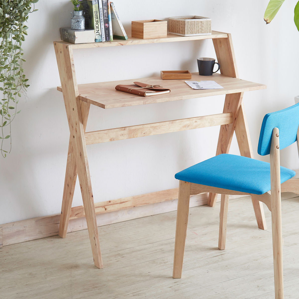 使い込む程に味が出てくるラバーウッド無垢材の質感、飽きのこないシンプルで機能的なデザインのワークデスクです。コンパクトサイズなので狭いスペースでもすっきり収まります。