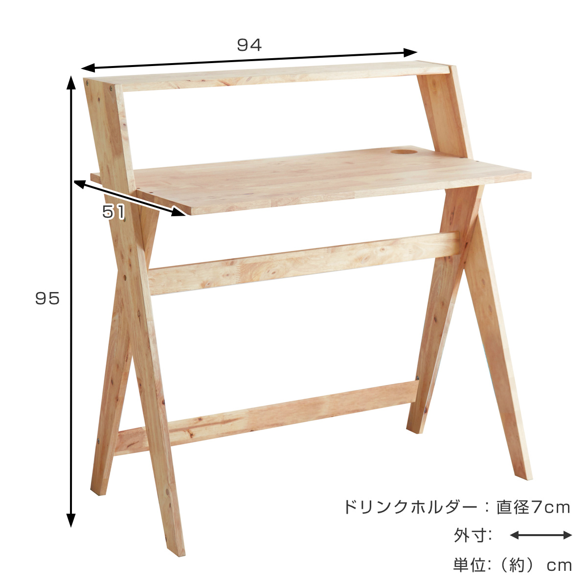 ワークデスク 幅94cm ドリンクホルダー付 NATURAL SIGNATURE ( デスク 机 学習机 勉強机 パソコンデスク コンパクト 木製 天然木 ドレッサー ラック棚 学習デスク パソコン PC リビングデスク おしゃれ 平机 )