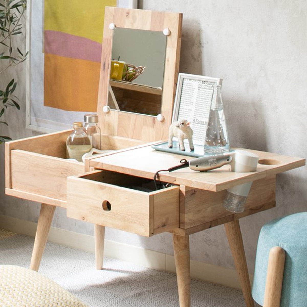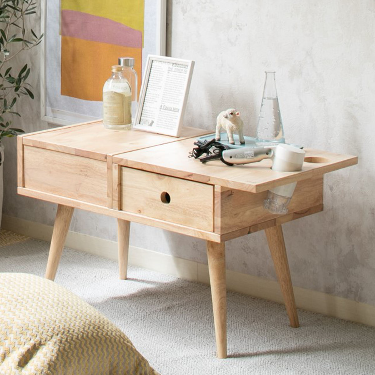 ドレッサーとテーブルの2way使いが叶うドレッサーテーブルです。柔らかくて穏やかな木目を活かしたデザインがお部屋の雰囲気を和ませる暮らしに寄り添う天然木シリーズです。