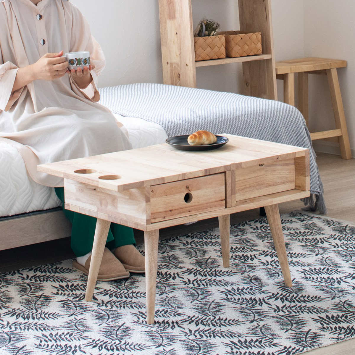 ドレッサー テーブル 幅75cm ドライヤーホルダー付 NATURAL SIGNATURE ( センターテーブル ローテーブル 鏡台 化粧台 木製 天然木 引き出し 鏡 ミラー コスメ メイク台 収納付き コンパクト ドリンクホルダー リビングテーブル )