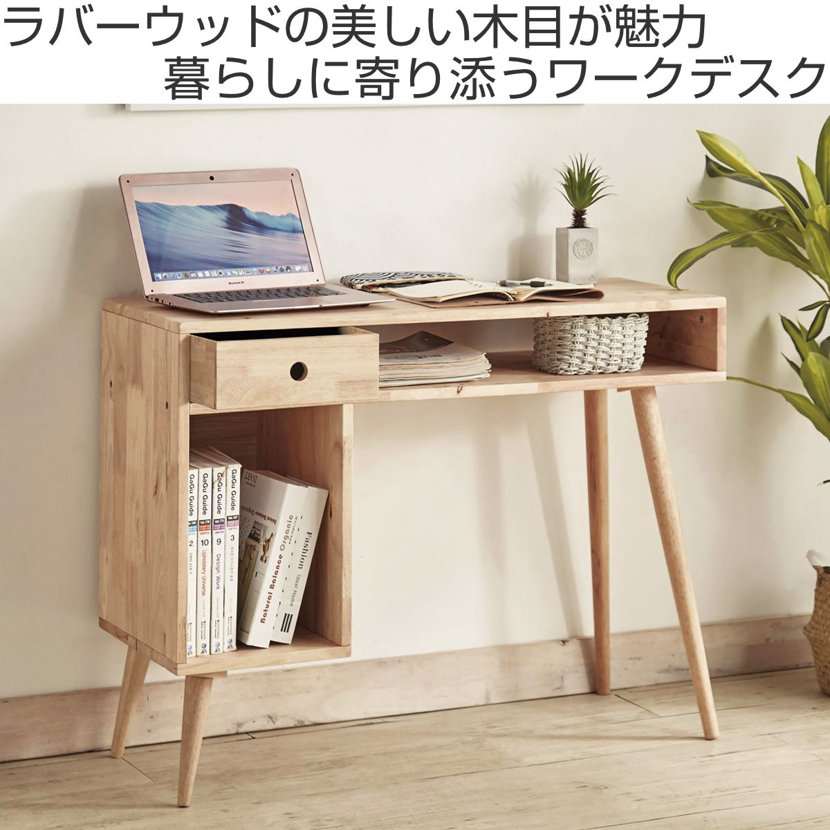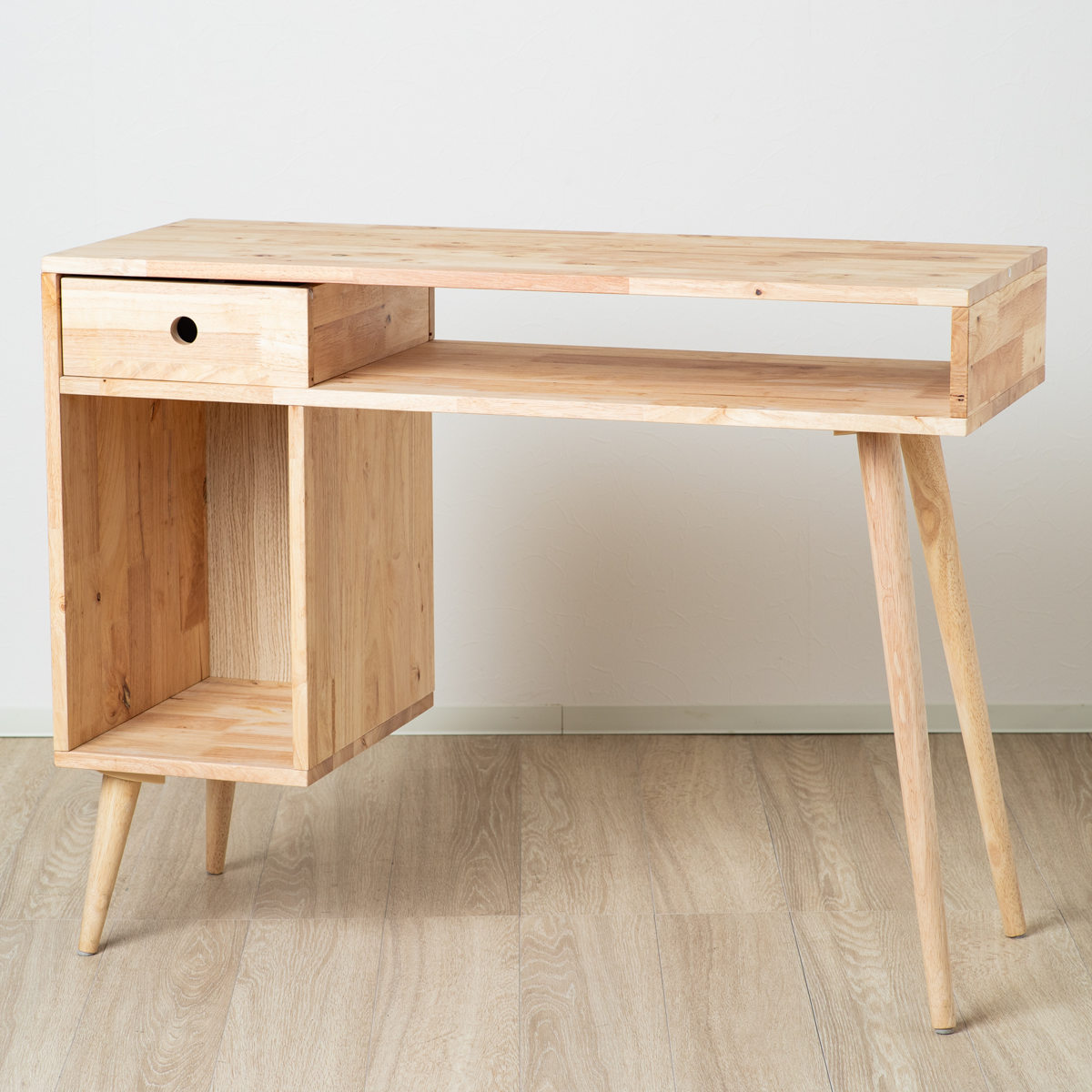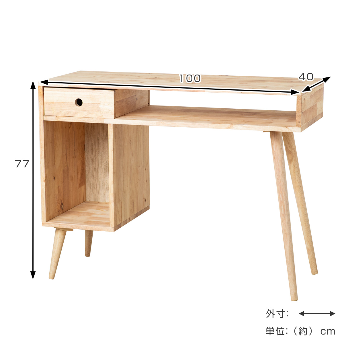 ワークデスク 幅100cm 収納棚付 片袖デスク NATURAL SIGNATURE ( デスク 机 学習机 勉強机 パソコンデスク コンパクト 木製 天然木 ドレッサー 引き出し 棚 学習デスク パソコン PC リビングデスク おしゃれ 平机 )