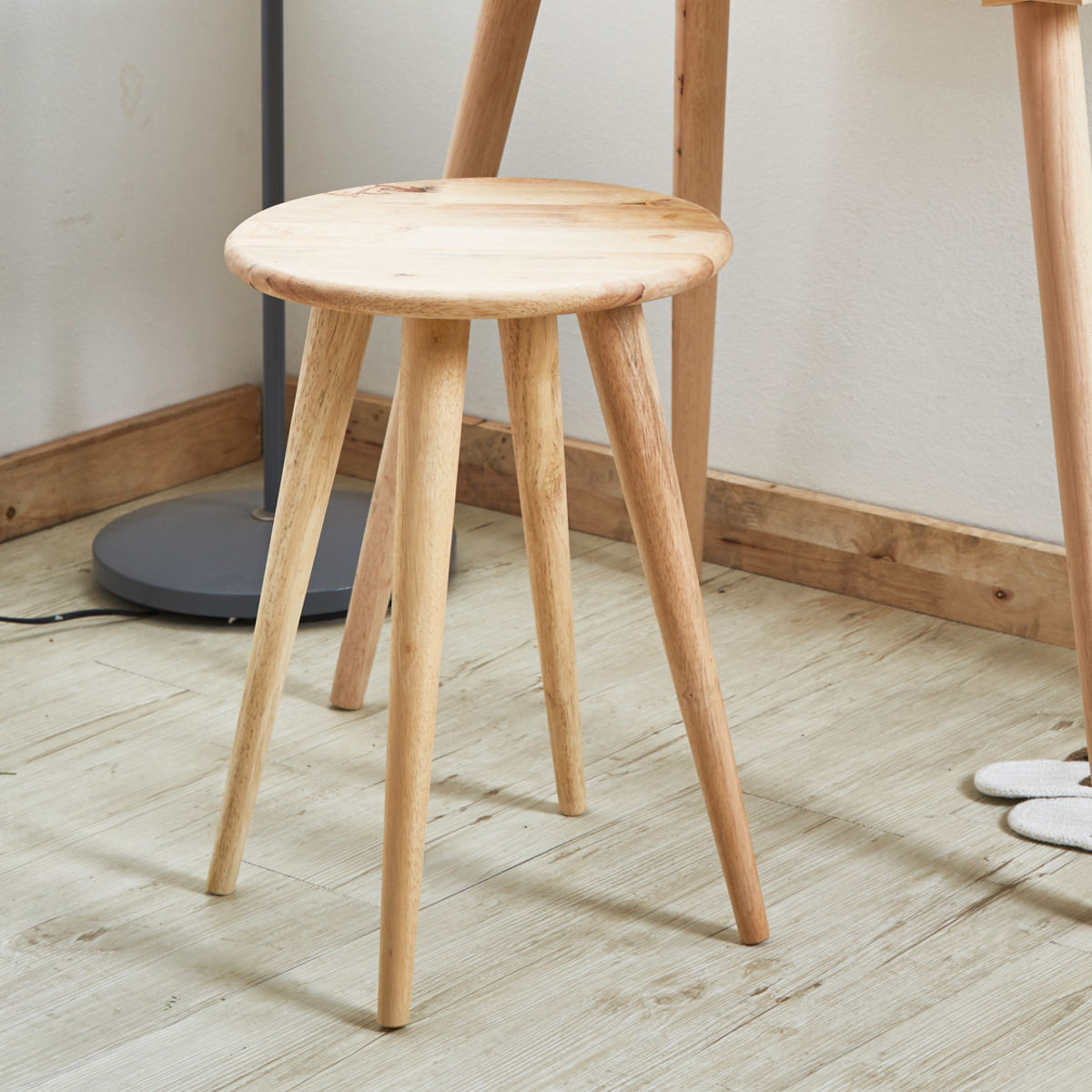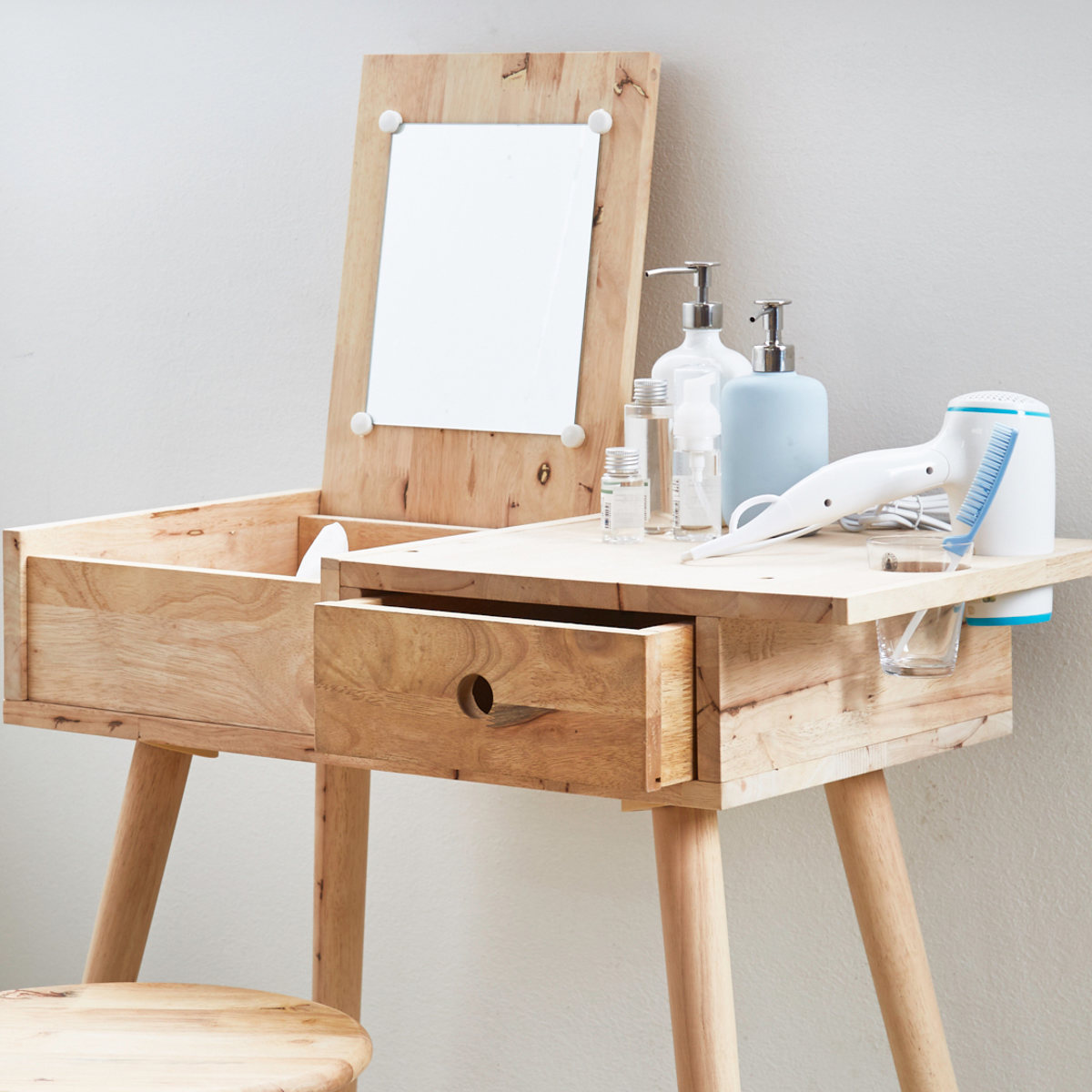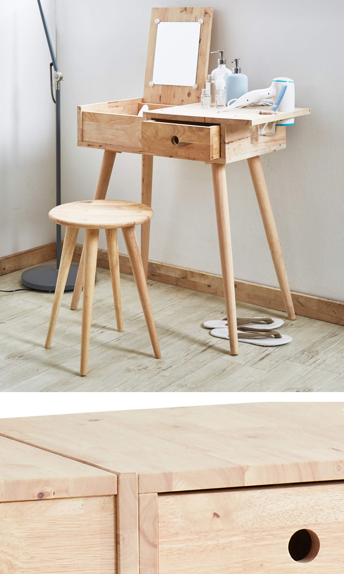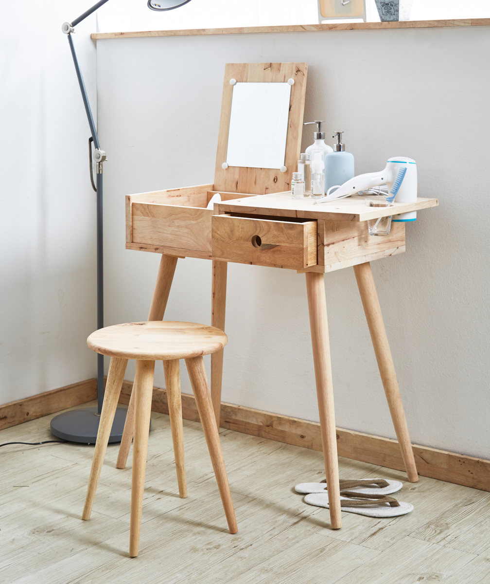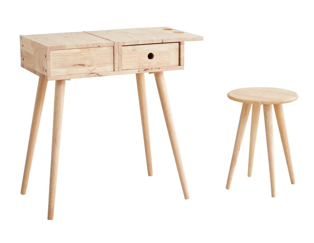 ラバーウッド無垢材のドレッサーデスクとシンプルスツール