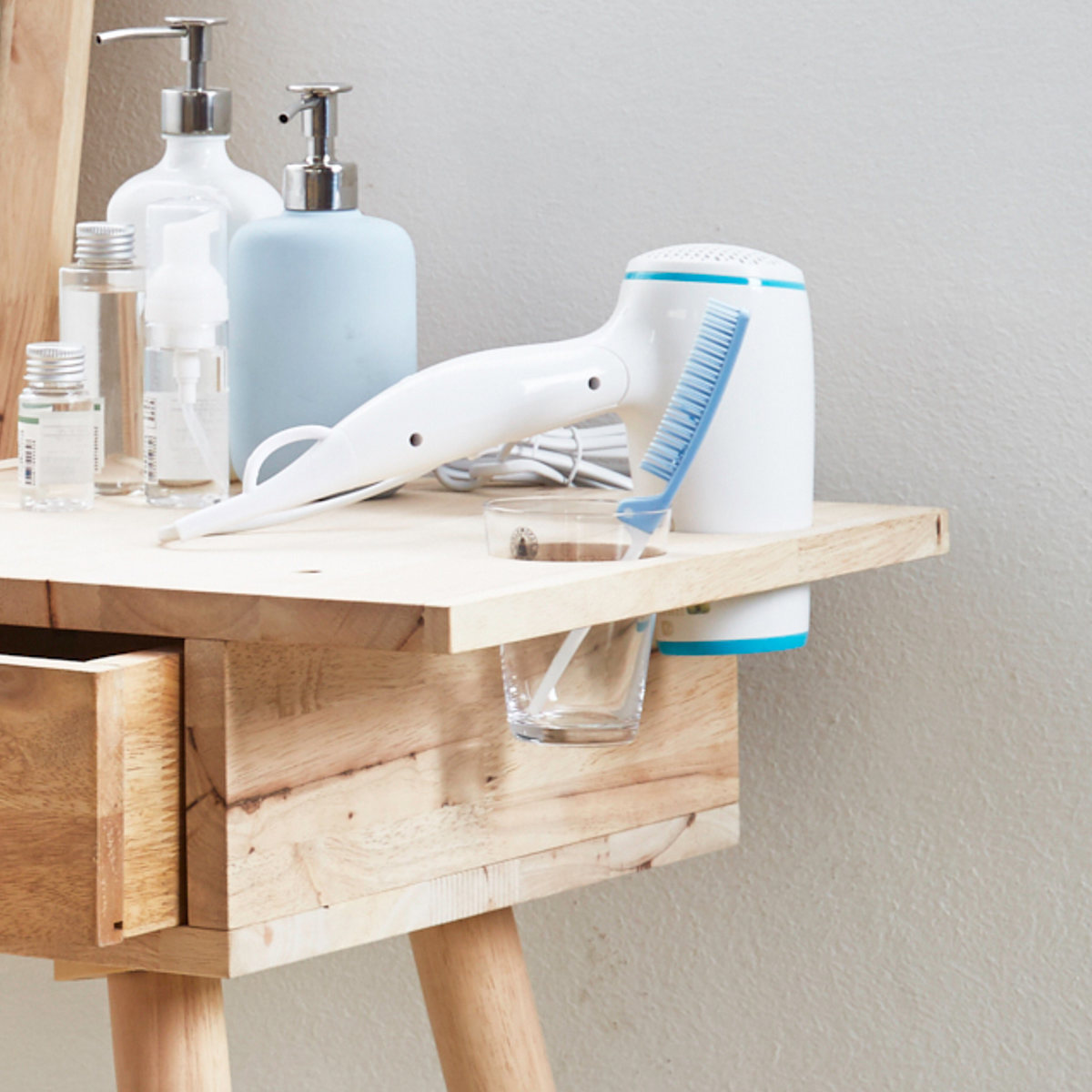 ヘアセットもできるよう、天板にはドライヤーホルダーが備えられています。