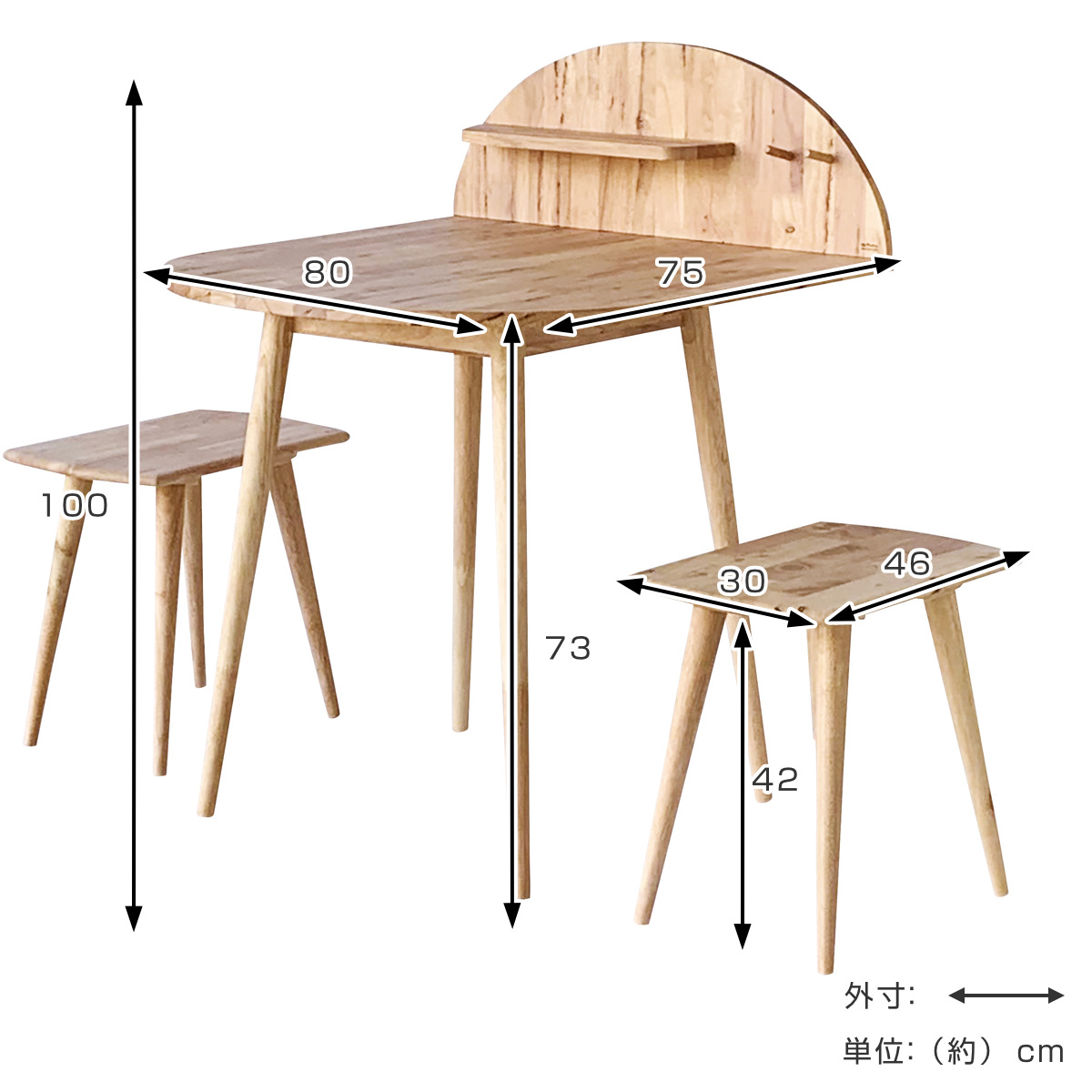 ダイニングテーブルセット 2人掛け 3点セット テーブル幅80cm 半円型 チェア×2 NATURAL SIGNATURE ( ダイニング 壁付け 木製 テーブル 机 棚付き スツール コンパクト 食卓 椅子 いす チェア イス 天然木 おしゃれ )