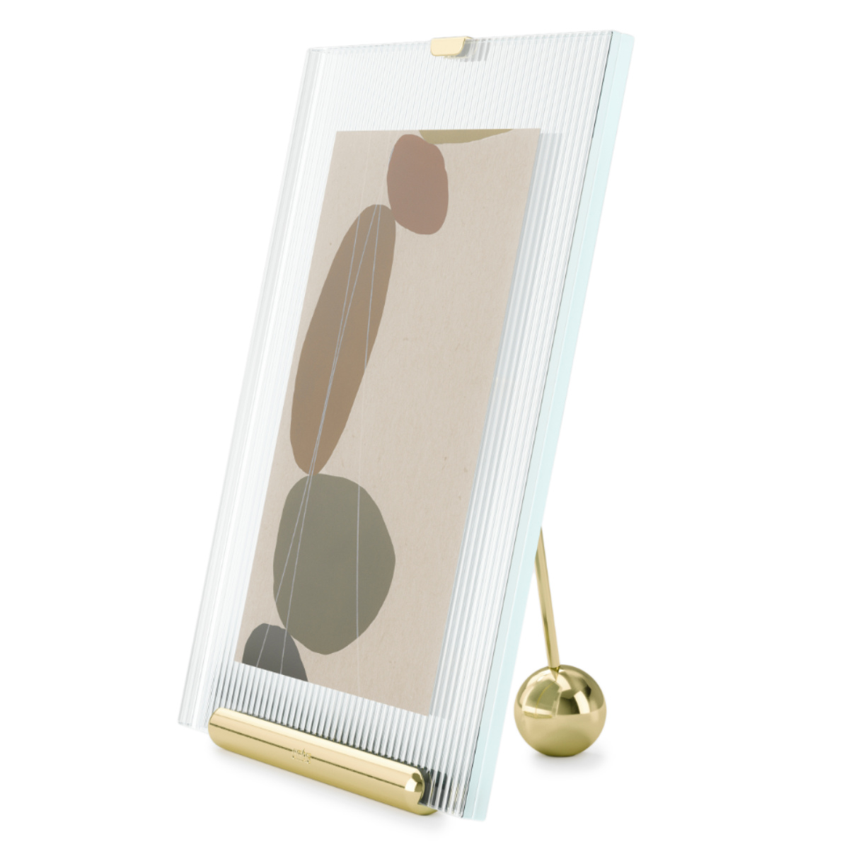 Umbra フルート フォトフレーム ガラス スチール 20×23cm ( 写真立て 写真 フレーム ガラス製 縦 横 2L判 イーゼルデザイン リブガラス 溝付きガラス フルートガラス おしゃれ フォト 飾る インテリア 玄関 リビング ) 【ゴールド】