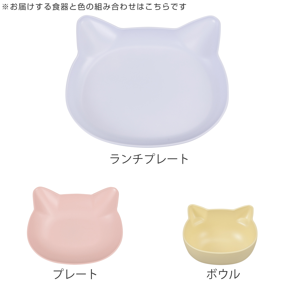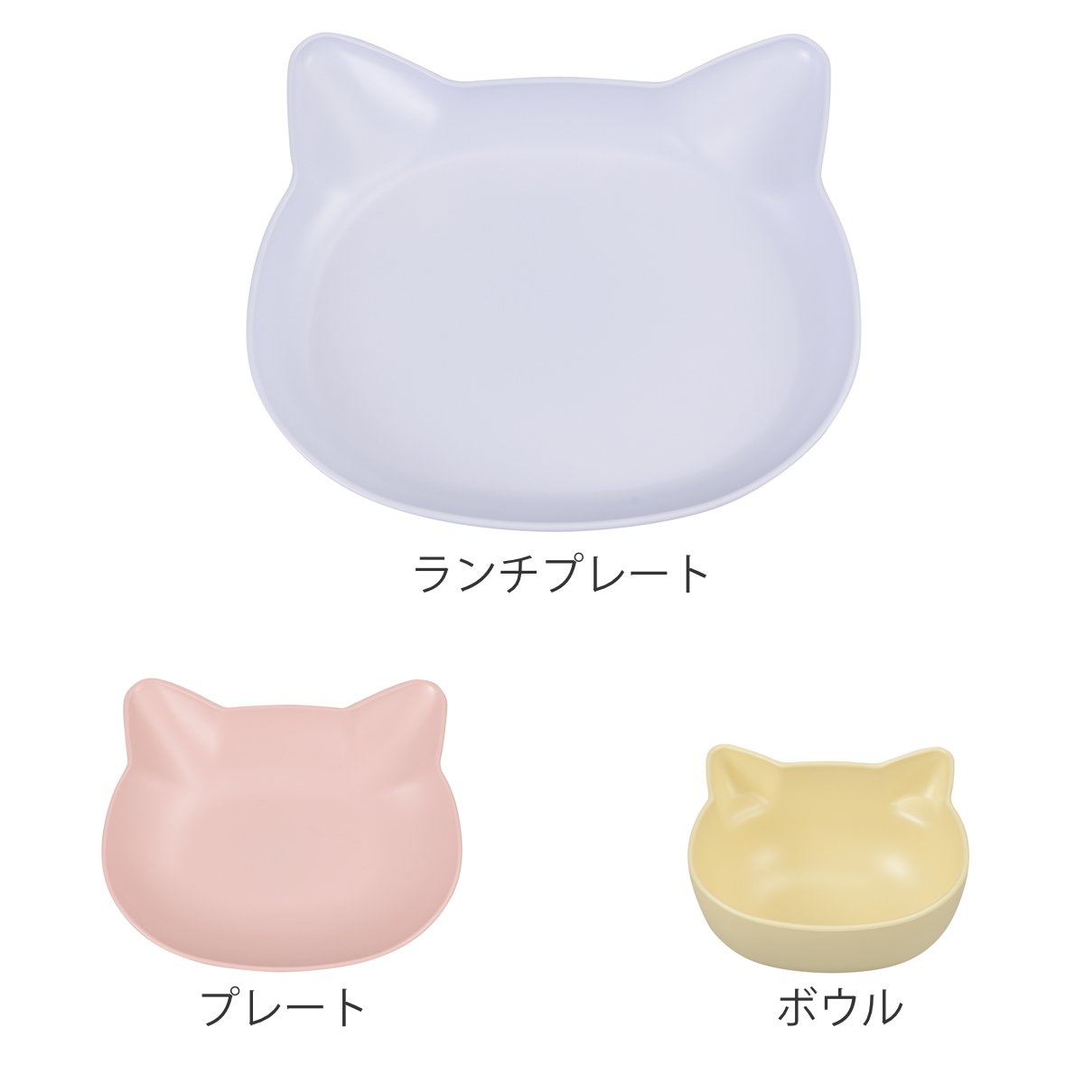 猫のお顔デザインがかわいい子ども用食器です。大人の食器と一緒に食卓に並べてもやさしく馴染むパステルカラーも魅力です。 抗菌加工により、衛生的にお使いいただけます。