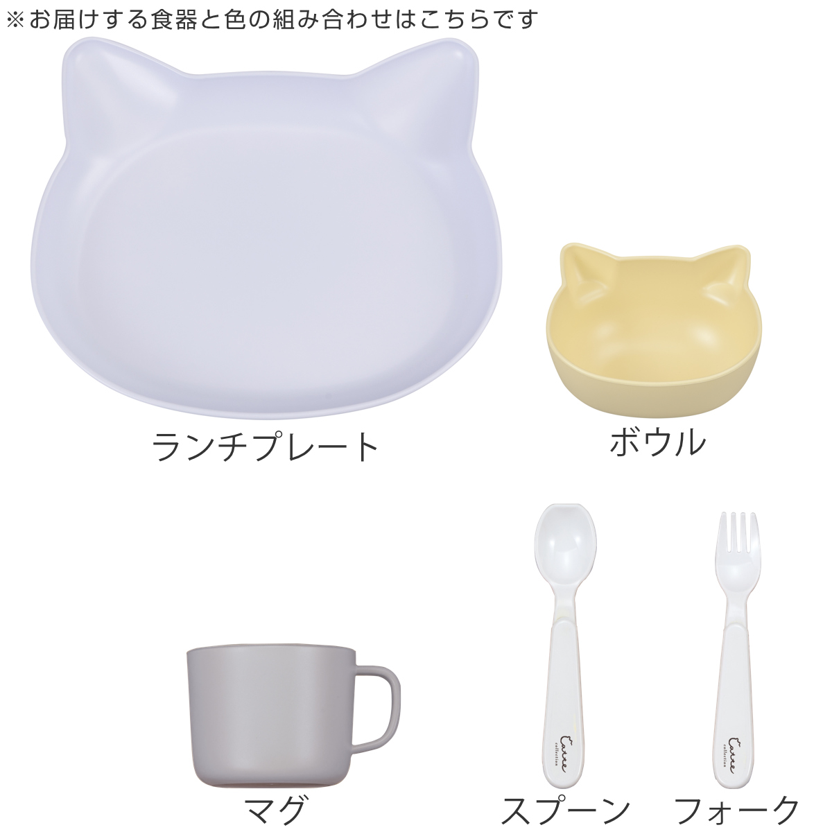 | 内容量 | ランチプレート、ボウル、マグ、スプーン、フォーク:各1個 |