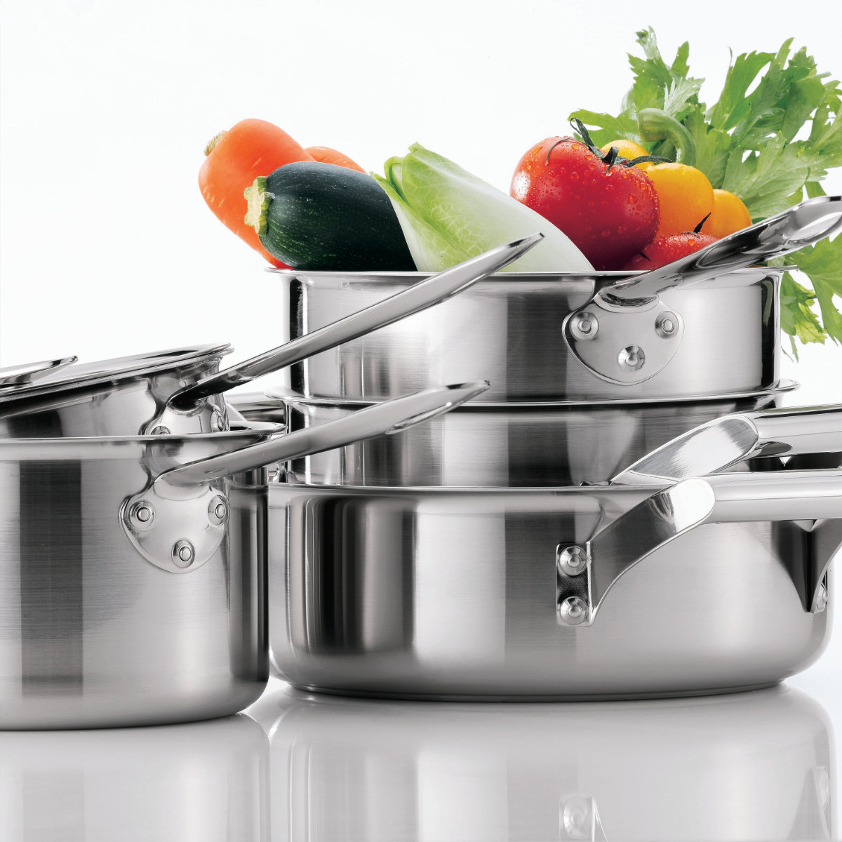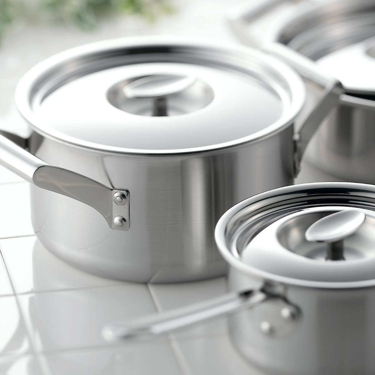 ステンレスの間にアルミを挟んだ全面3層構造です。IHクッキングヒーターに接する外側は有磁性に優れたステンレス(SUS430)を使用しているので、熱効率に優れています。また、発生した熱を内部のアルミが素早く均一に伝えるので、スピィーディに美味しく調理できます。