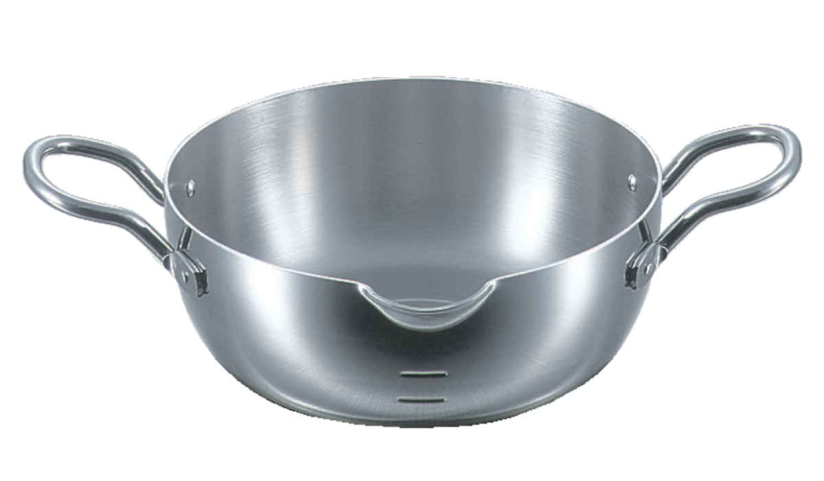 ●ステンレスとアルミを使用したクラッド三層構造の天ぷら鍋です。