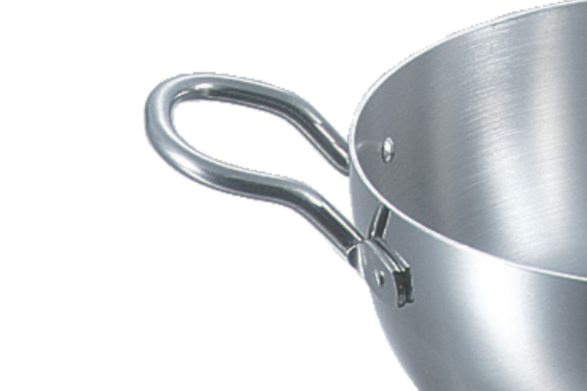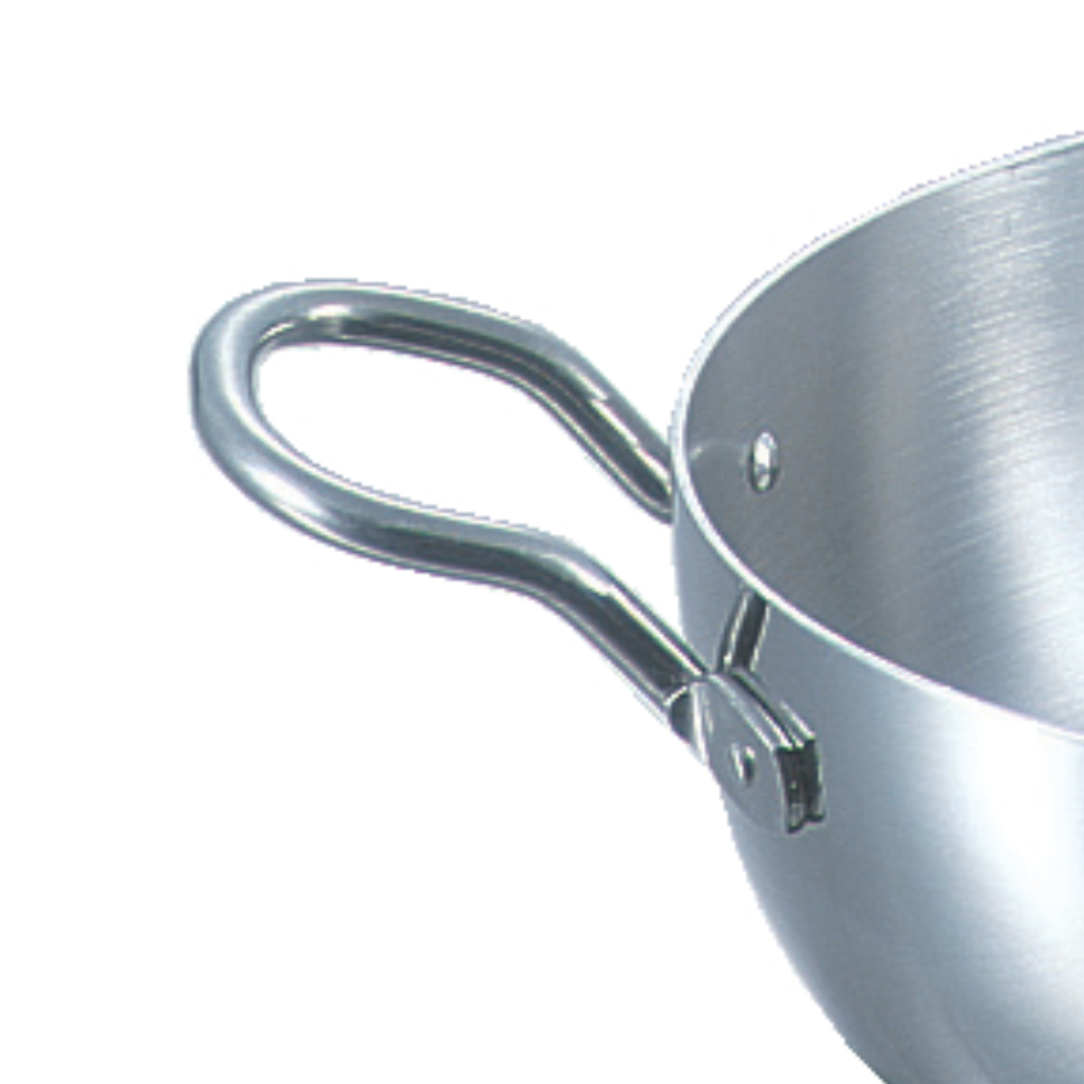 | 材質 | 【本体】アルミクラッド三層鋼 外側:ステンレス(SUS430=クローム18%、ニッケル0%) 内部:アルミニウム 内側面:ステンレス(SUS304=クローム18%、ニッケル8%) 【持ち手】18-8ステンレス |