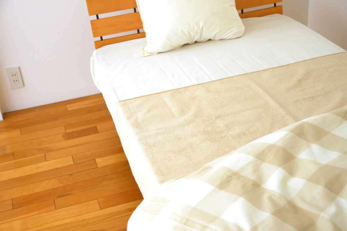お布団の上に敷いてもかさばりにくく、違和感なく使用できます。折りたたんでコンパクトになり、収納や持ち運びにも困りません。