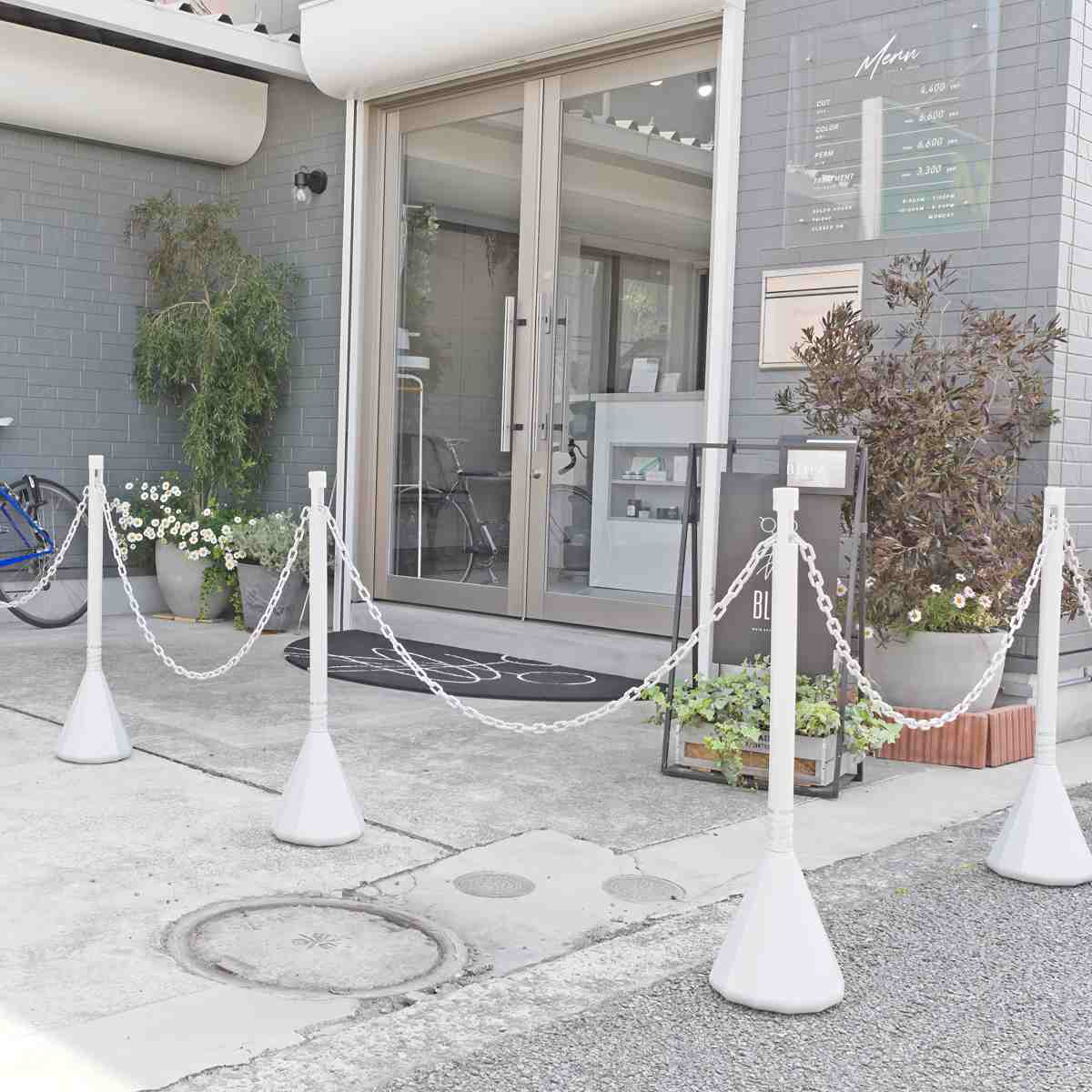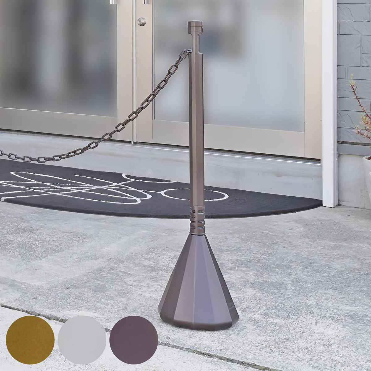 工事不要で簡単に設置できるチェーンスタンドです。コーンに比べて景観を保つことができるので使いやすいです。ポールとベースを同色にし、上品な印象でどんな場所にもマッチします。