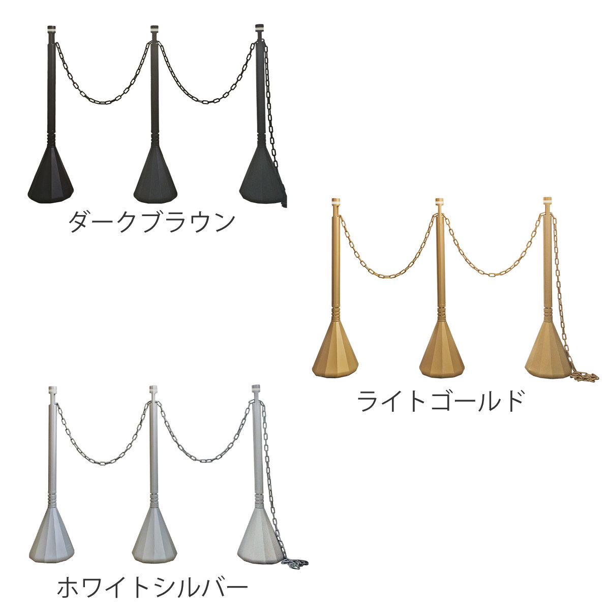 駐車場スタンド スマートチェーンポール 3本組DB 反射シート チェーン付 ( チェーンポール プラスチック製 ガイドポール ポールスタンド チェーンパーテーション ポールパーテーション パーテーション 反射シール付 チェーン入 3本 ) 【ダークブラウン】