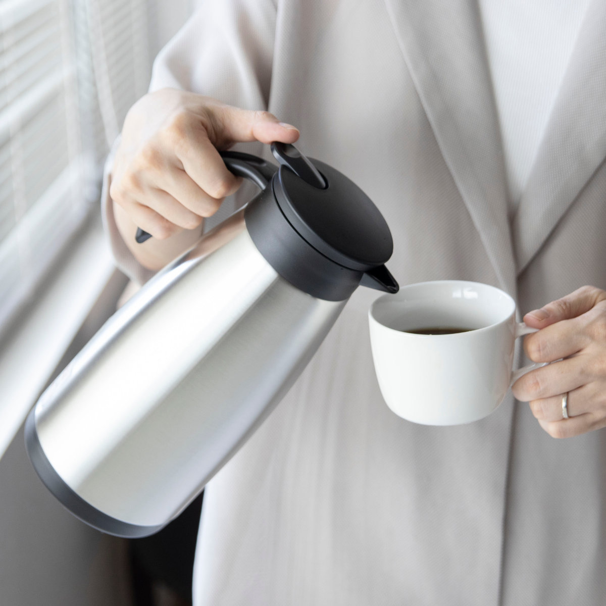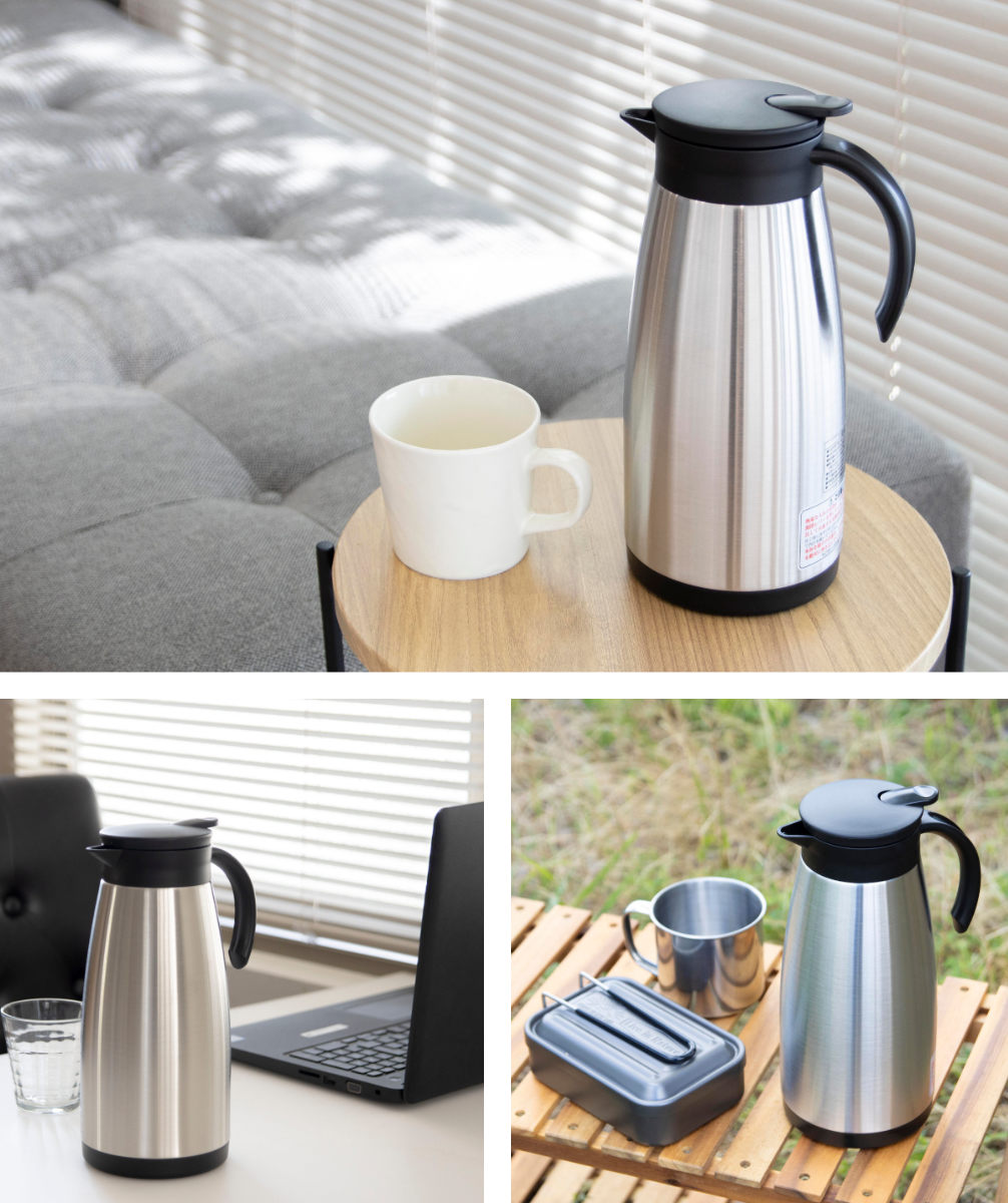 軽量でありながら丈夫なステンレス製のポットは、ご自宅はもちろん、オフィスやキャンプでのアウトドアなど屋内外の幅広いシーンで活躍します。