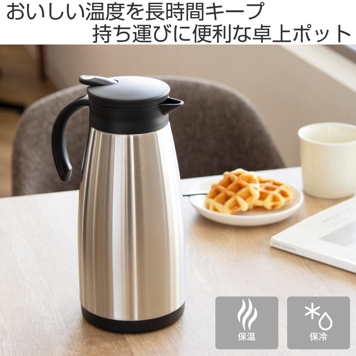 ポット 1.5L アコット ステンレス テーブルポット ( 卓上ポット 保温 保冷 ステンレスポット 保温ポット 保冷ポット おしゃれ 卓上 持ち運び 真空二重構造 コーヒー お茶 ワンプッシュ 広口 )