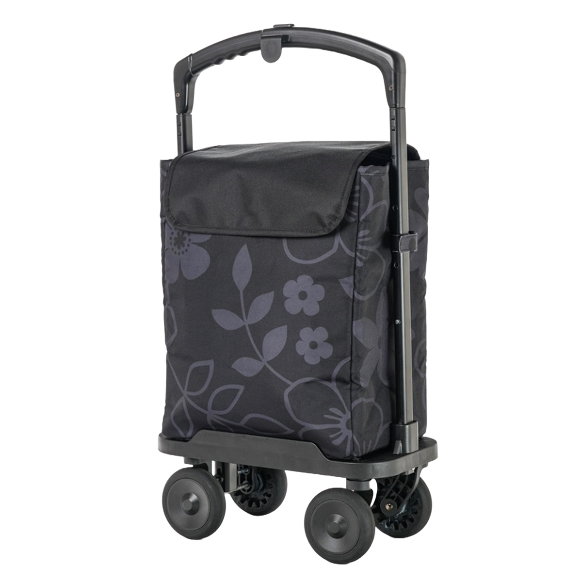 ショッピングカート 保冷仕様 メッシュバック付き 3段階 高さ調節可能 ( カート 買い物 軽量 4輪 横 押し 横押し 保冷 軽い エコバッグ ショッピング 買い物カート クーラーバッグ ショッピングバッグ 旅行 おでかけ ) 【花柄ブラック】