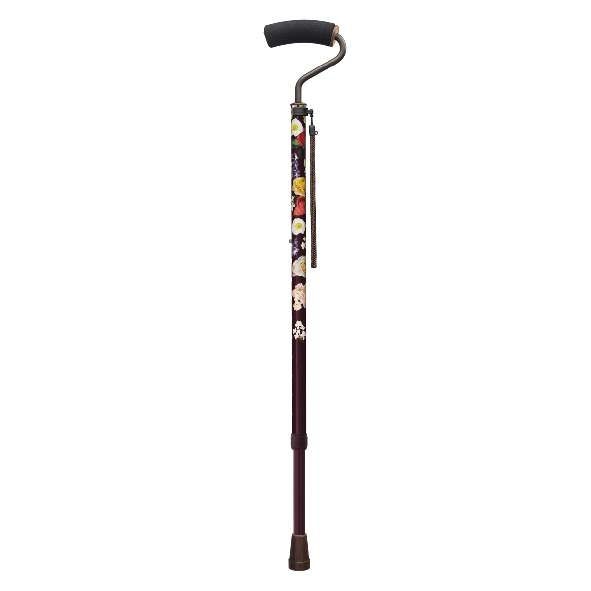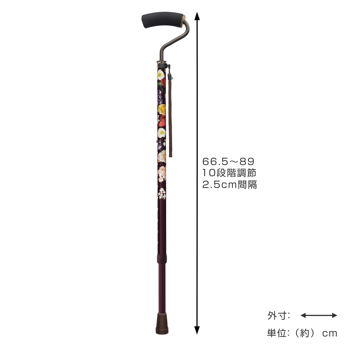 杖 伸縮 手のひらフィットステッキ伸縮 介護 華ワイン チェック ( つえ ステッキ 一点杖 手のひら フィット 高齢者 軽量 伸縮式 花柄 おしゃれ 女性 10段階調節 アルミ製 歩行補助 SGマーク 握りやすい 歩行 補助 リハビリ )