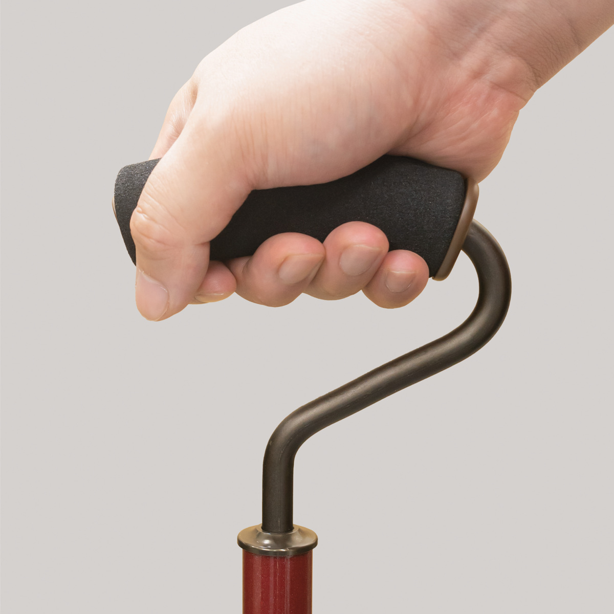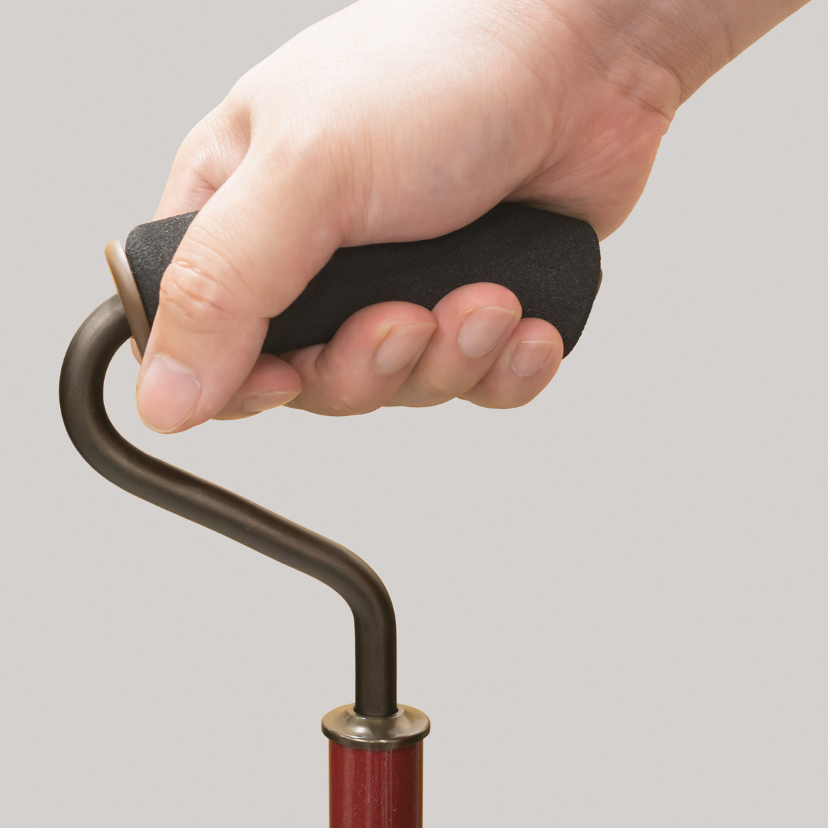 腕と杖が一直線になるように持ってください。グリップの一部だけを握ると不安定になり危険です。