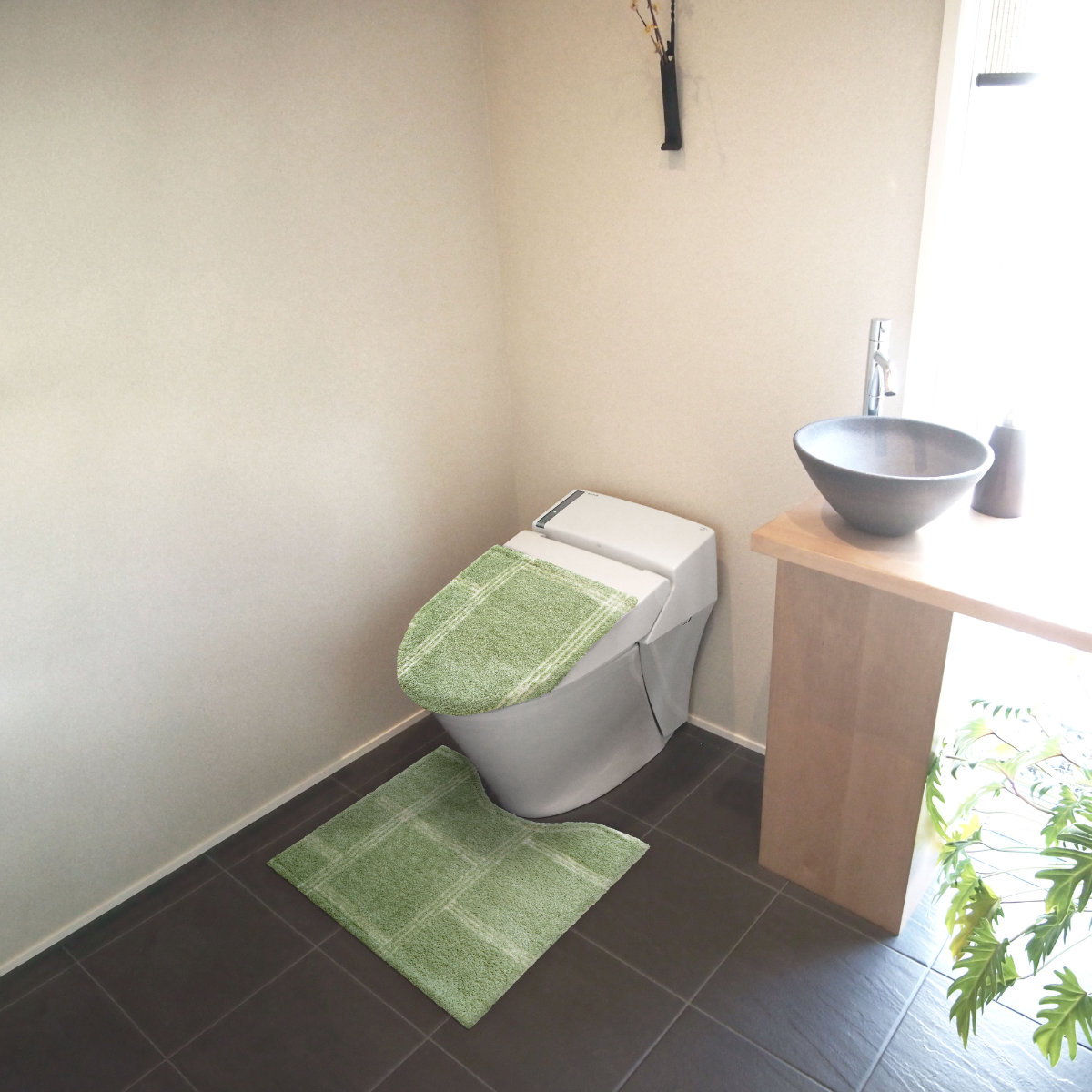 マットやカバー類を同シリーズで揃えることで、トイレ空間に統一感が生まれ、すっきりとした印象に仕上がります。落ち着いたカラーとシンプルなデザインが調和し、清潔感のある心地よい空間を演出します。