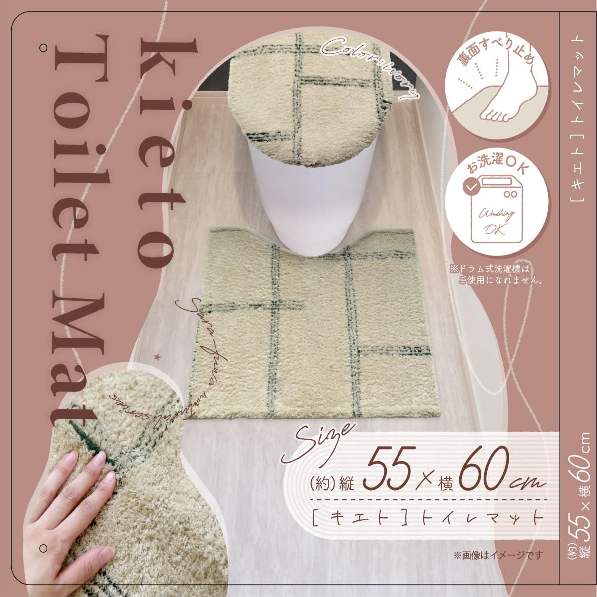 トイレマット kieto 55×60cm ( トイレ マット 足元マット すべり止め 洗える シンプル トイレタリー 滑り止め 洗濯可 55×60 やわらか アイボリー グリーン ) 【アイボリー】