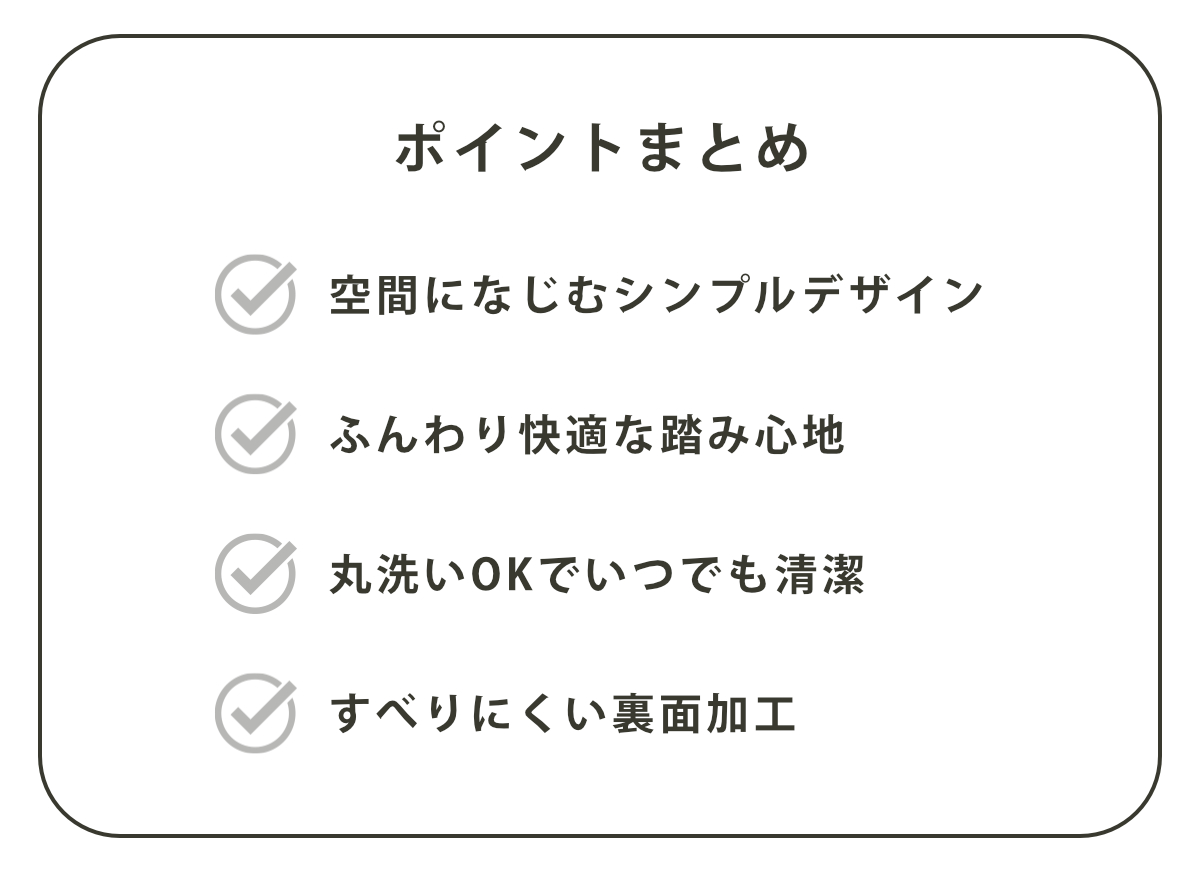 ●やわらかな質感のポリエステル素材を使用し、足元にやさしくなじむ快適な踏み心地に仕上げました。
