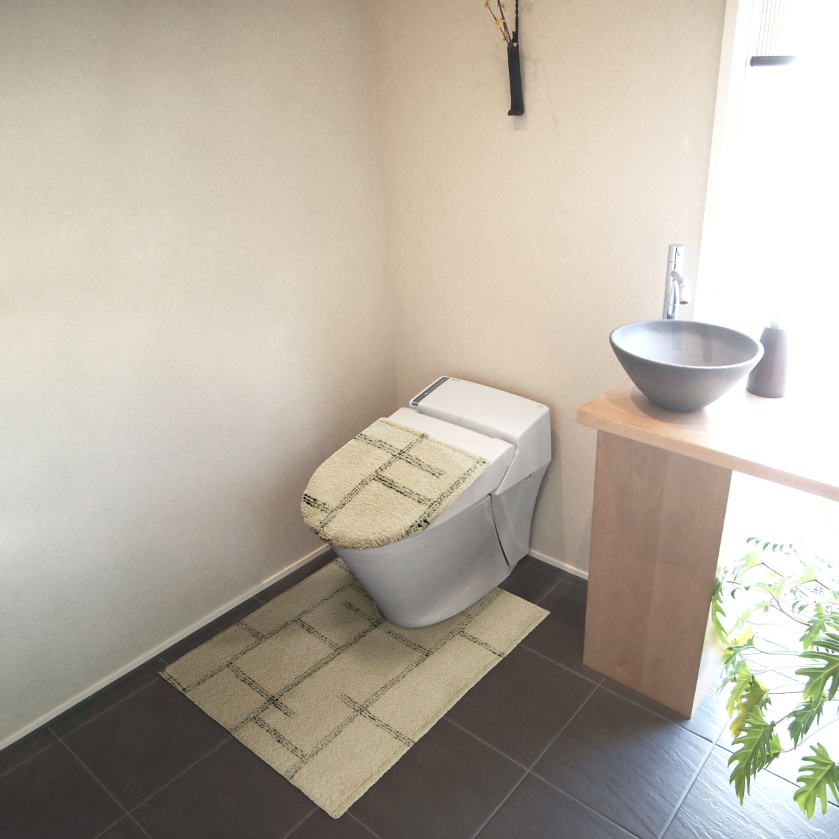 マットやカバー類を同シリーズで揃えることで、トイレ空間に統一感が生まれ、すっきりとした印象に仕上がります。落ち着いたカラーとシンプルなデザインが調和し、清潔感のある心地よい空間を演出します。