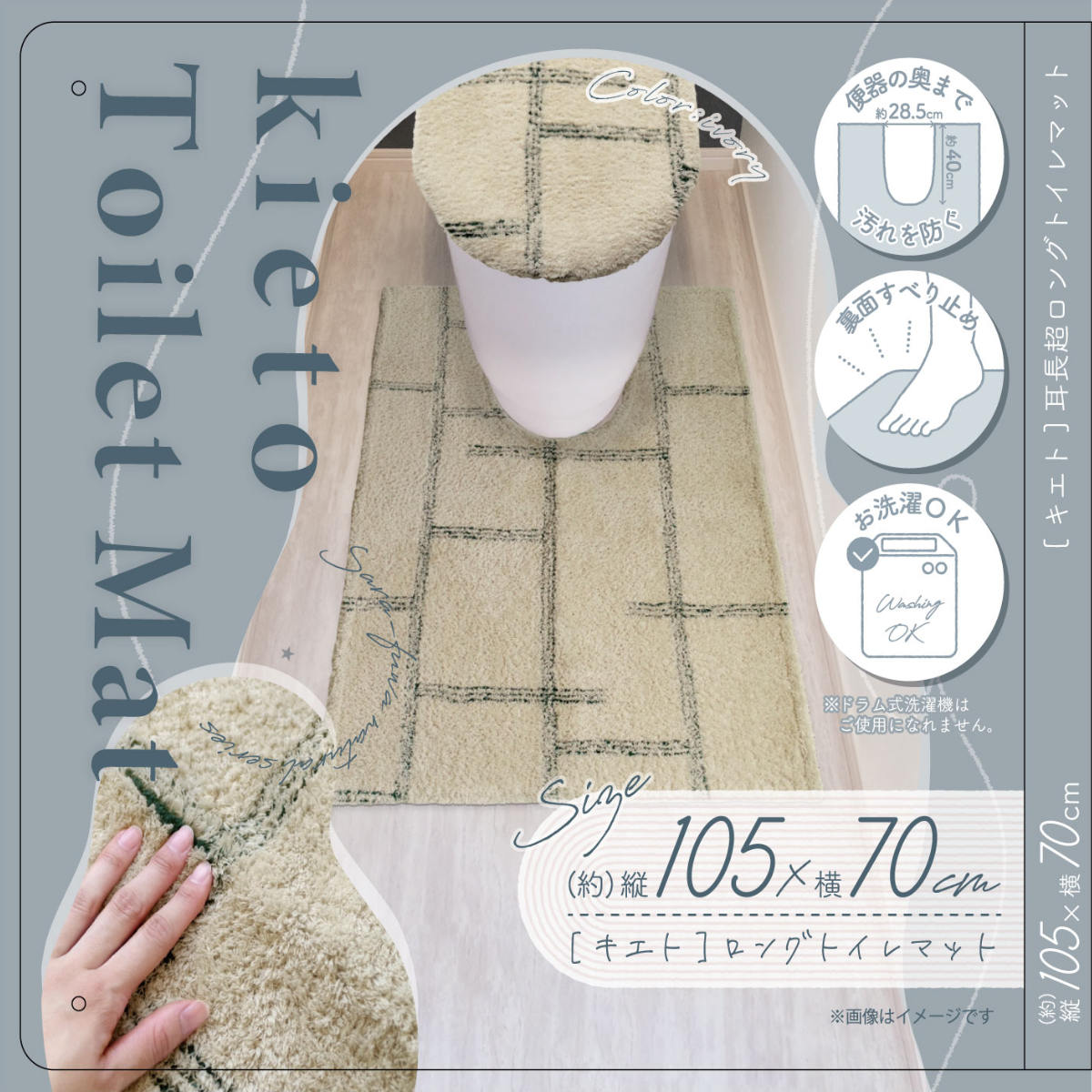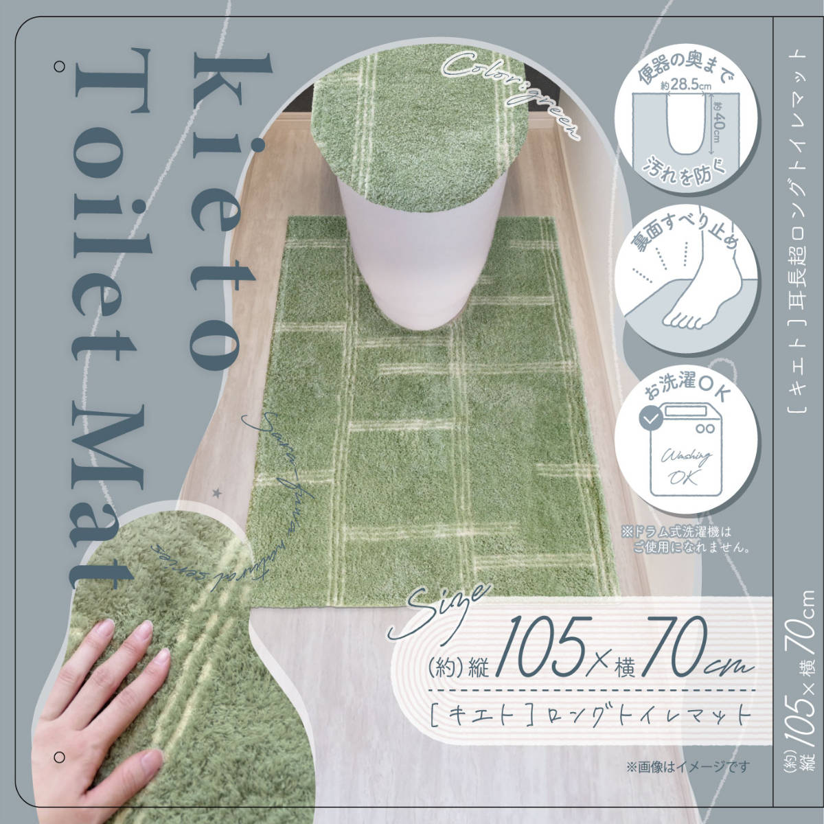 耳長超ロングトイレマット kieto 105×70cm ( トイレ マット 足元マット 耳長 ロング すべり止め 洗える シンプル トイレタリー 滑り止め 洗濯可 105×70 やわらか アイボリー グリーン ) 【アイボリー】