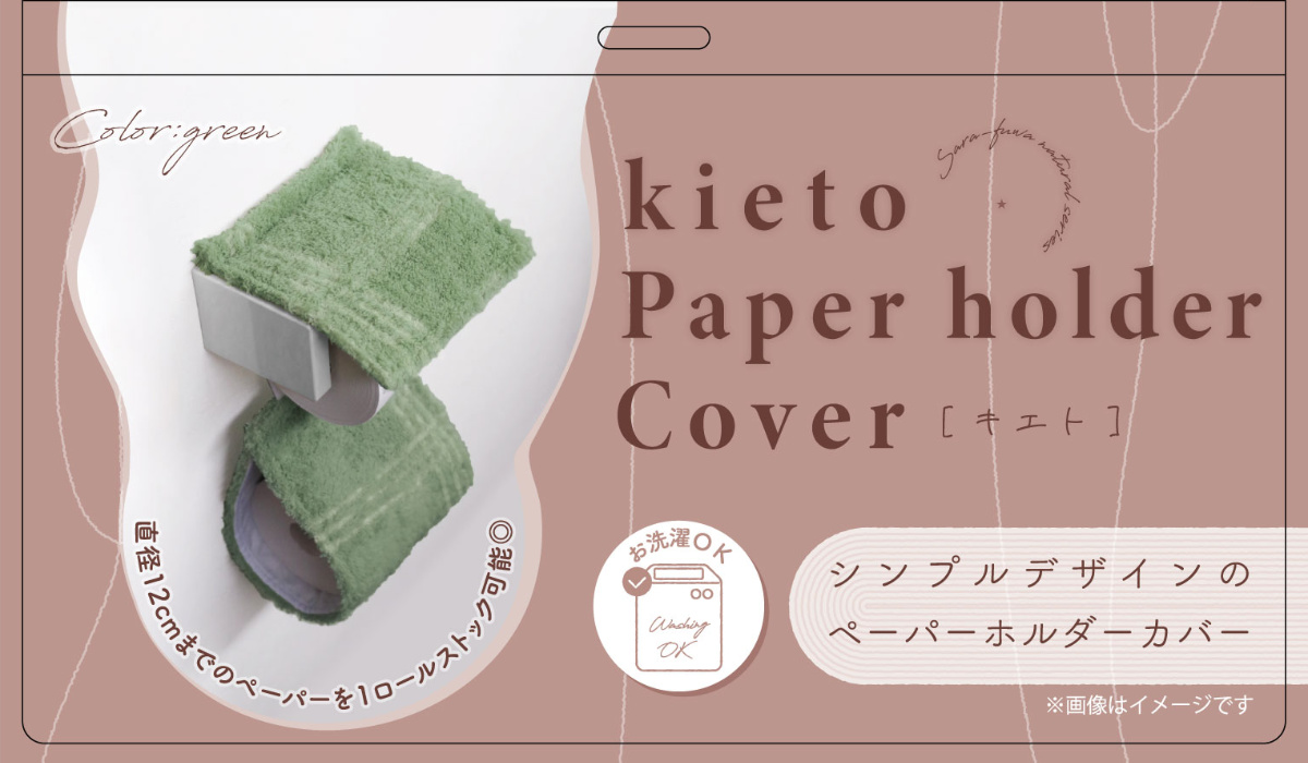 ペーパーホルダーカバー kieto ( トイレットペーパーカバー ペーパーホルダー 予備 洗える シンプル トイレタリー ホルダーカバー 洗濯可 取付簡単 アイボリー グリーン ) 【グリーン】