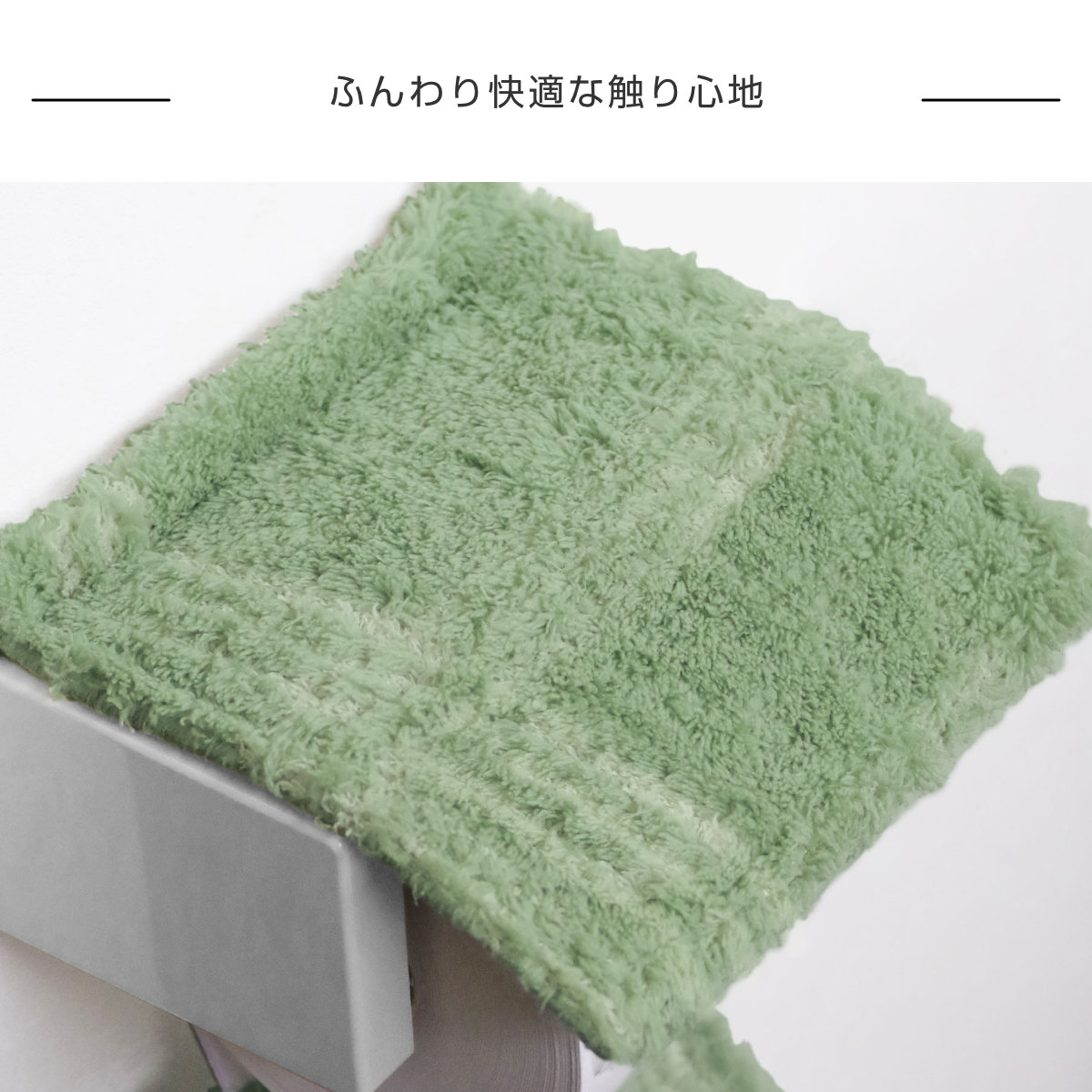 やわらかな質感のポリエステル素材を使用し、手に触れたときにやさしさを感じられる使い心地に仕上げました。ふんわりとした感触で、トイレに入った瞬間から心地よさを感じられ、毎日の使用でも快適にお使いいただけます。