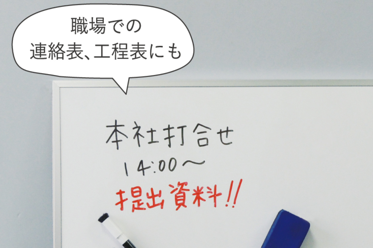 表面がホワイトボード仕様のマグネットがつく壁面材「アイパネルWB」です。職場での連絡表、工程表などにおすすめです。