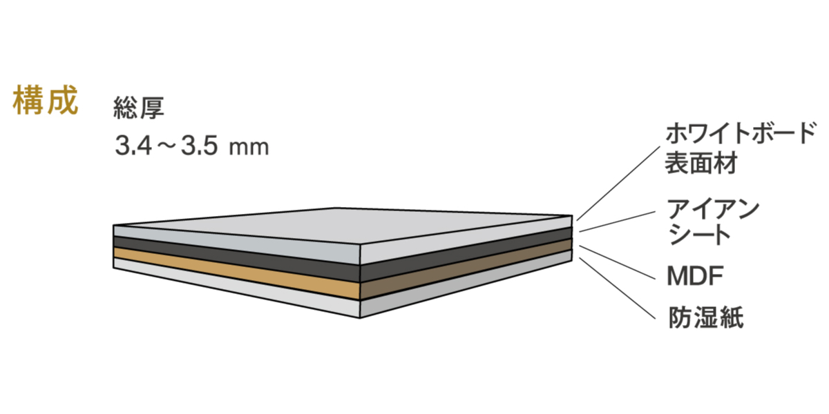 ※アイパネルWBの表面はホワイトボードに特化した処理が施されています。筆記性・消去性に優れている反面滑りやすく、マグネットの保持力は弱くなります