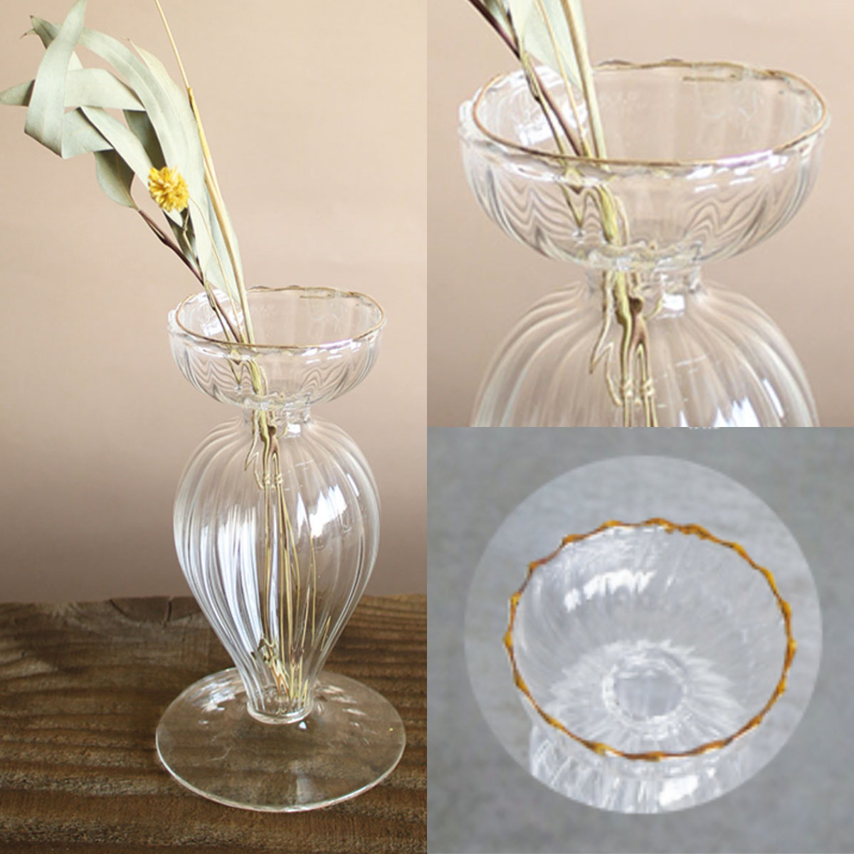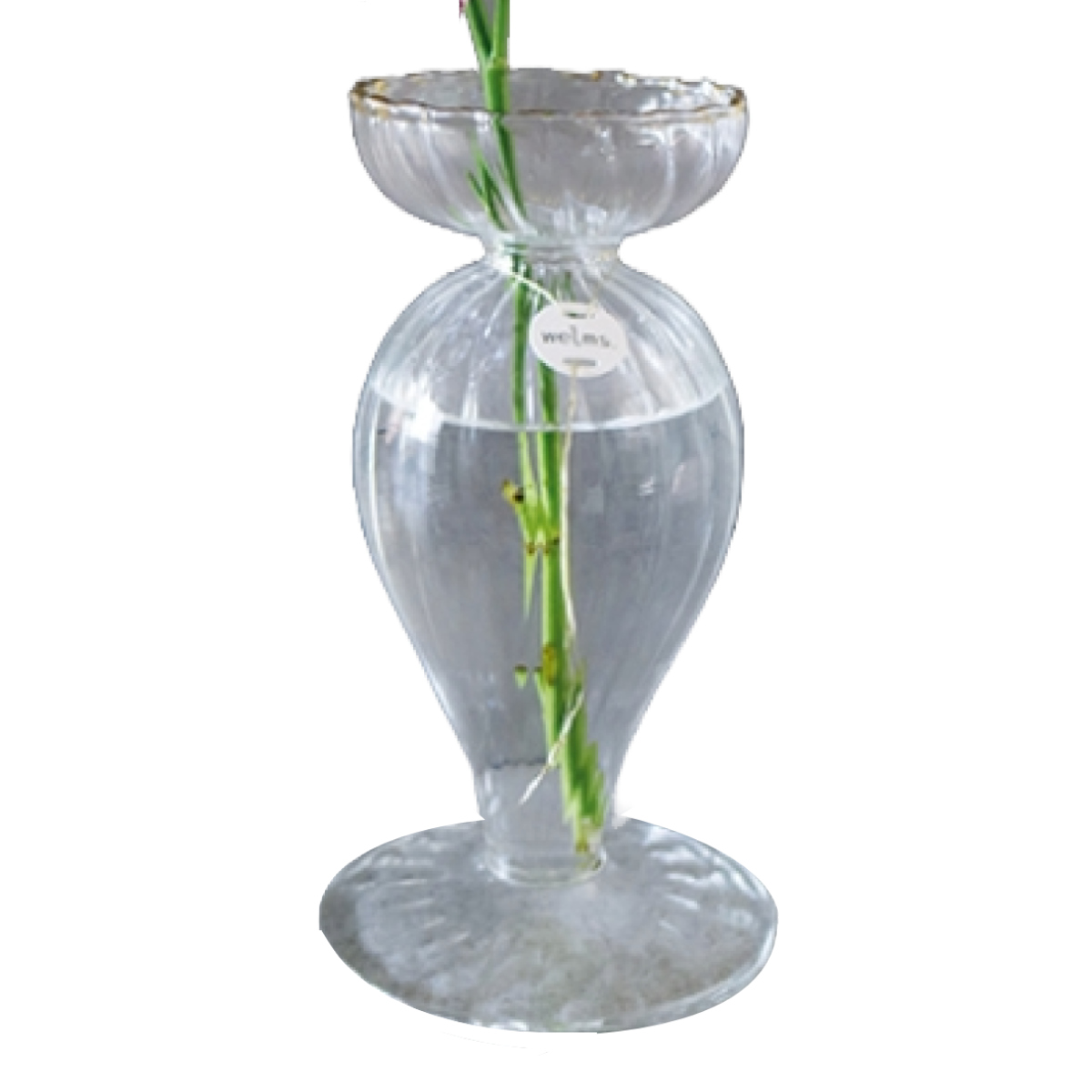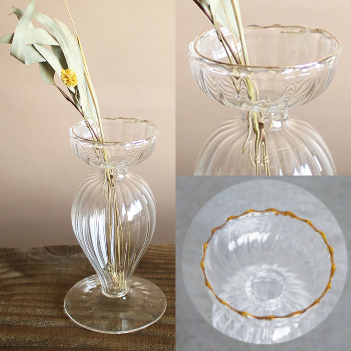 ゴールドのふちがポイントの一輪挿しです。シンプルなデザインなので、お庭で摘んだ草花でも素敵に飾ることができます。繊細で清楚なガラスのデザインは、どんなお部屋にも調和します。