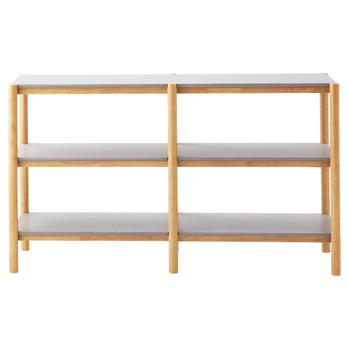 絶妙なくすみグレーの棚板と、木のぬくもりを感じさせるナチュラルなフレームを組み合わせたオープンシェルフです。スタイリッシュなグレーと、明るく優しいナチュラルカラーのコントラストがお部屋のアクセントになります。