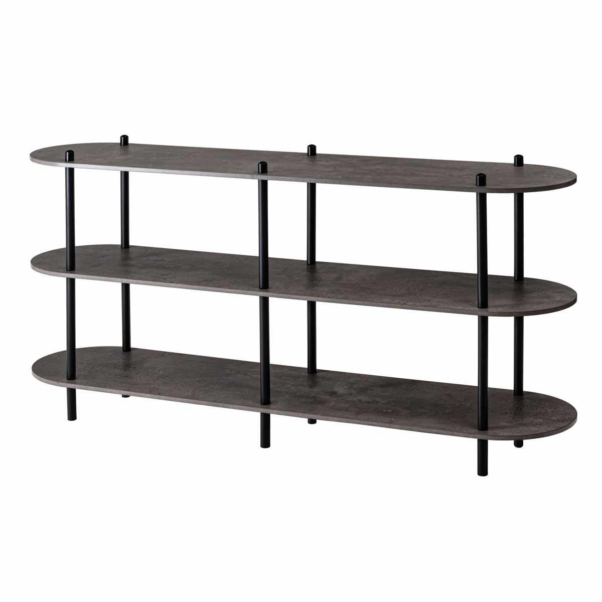 オープンラック 幅155cm 3段 石目調 シンプル ( ラック 棚 飾り棚 シェルフ 収納 三段 本棚 ディスプレイ ブラック ホワイト ) 【ブラック】