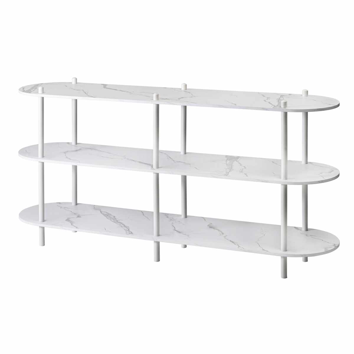 石目調の棚板とスリムな支柱が美しいオープンラックです。高いデザイン性とシンプルな構造で、お部屋の雰囲気をグレードアップ。扉がなくスッキリとした見た目で、空間を広く見せながら収納することができます。壁面で使用するだけでなく、空間の間仕切りとしてもお使いいただけます。