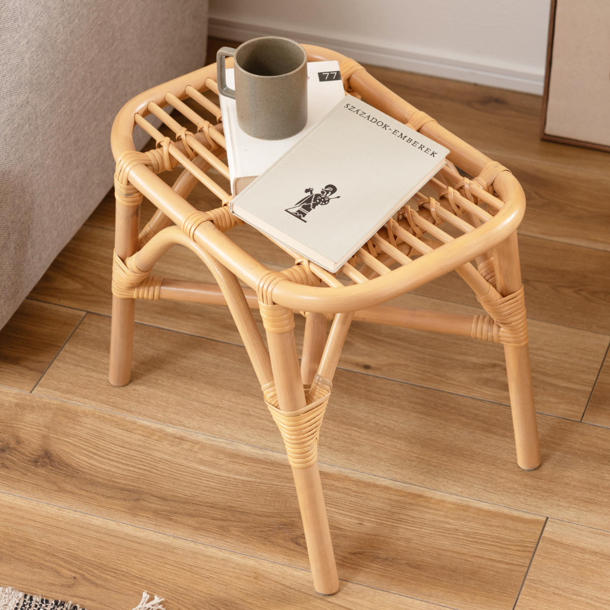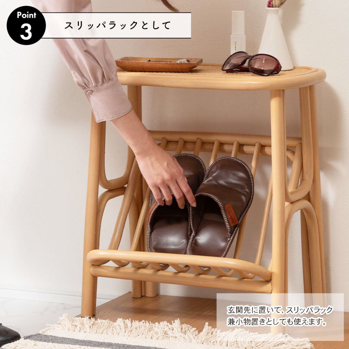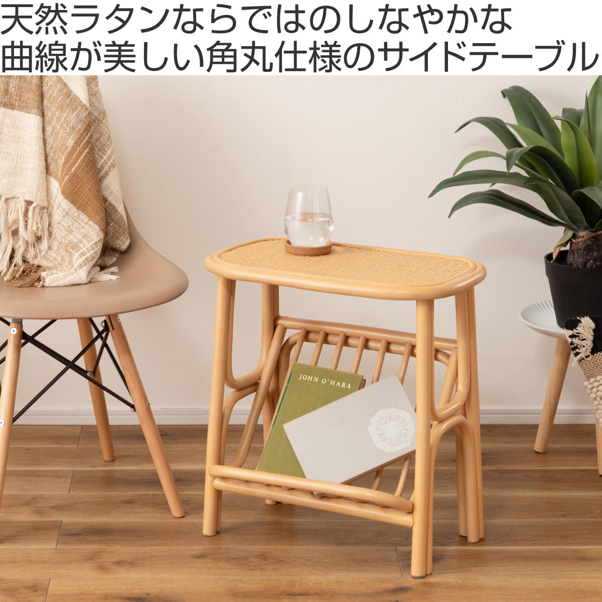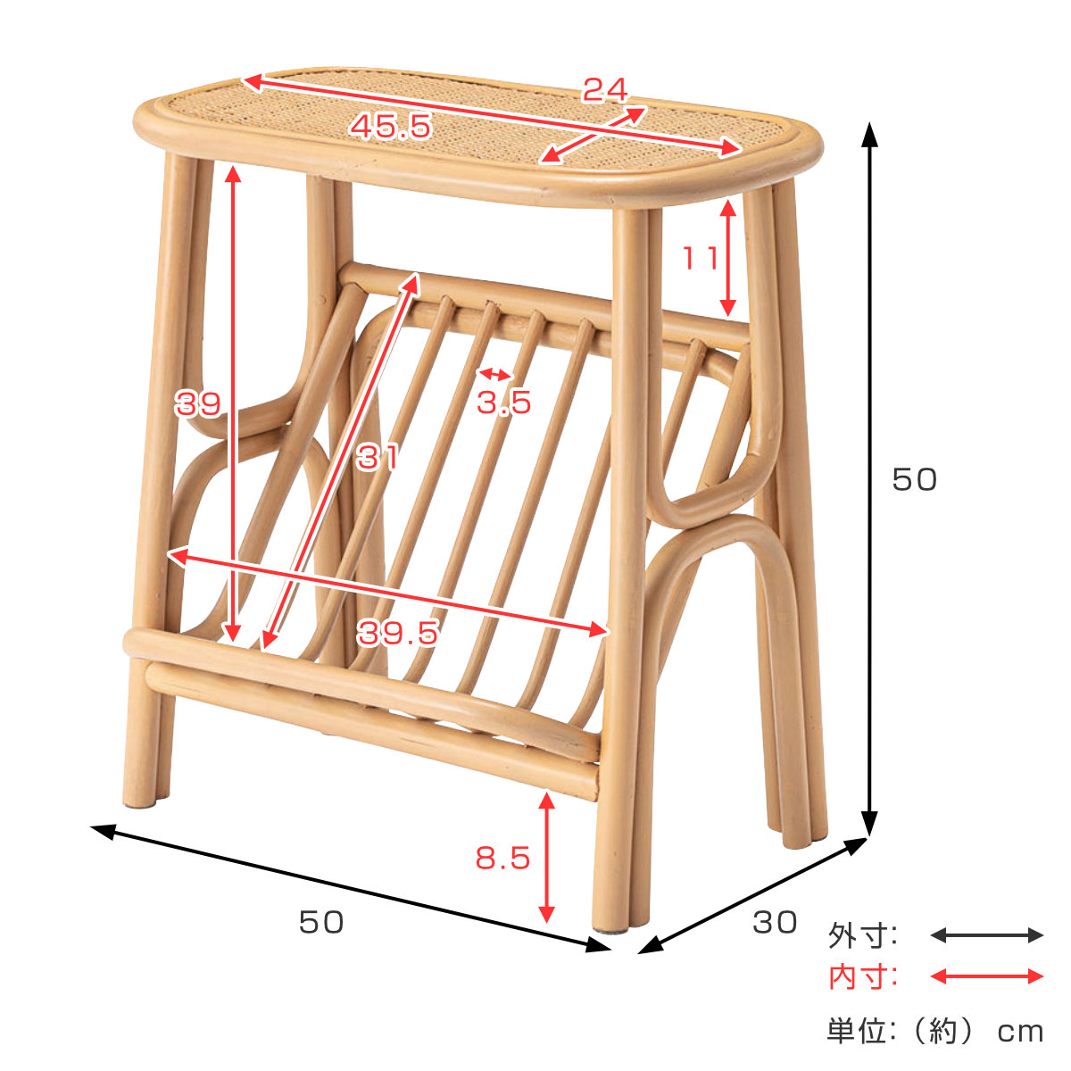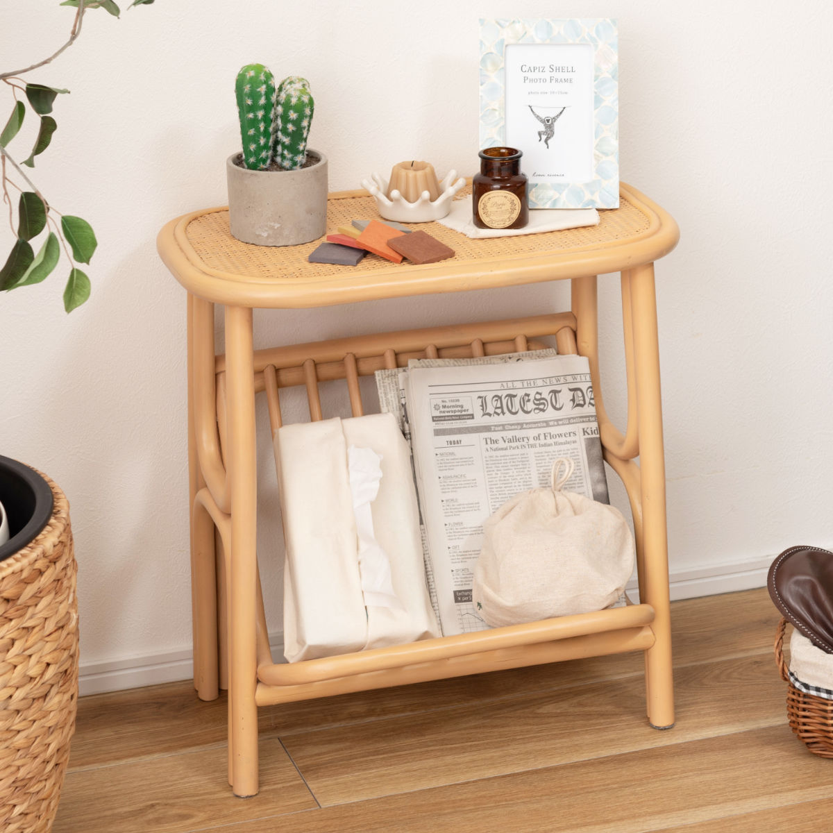 籐 サイドテーブル 幅50cm マガジンラック付 天然木 ( ナイトテーブル マガジンラック ラタン 籐家具 テーブル 収納 棚付き 軽量 コンパクト 玄関 ミニテーブル スリッパラック 完成品 天然素材 )