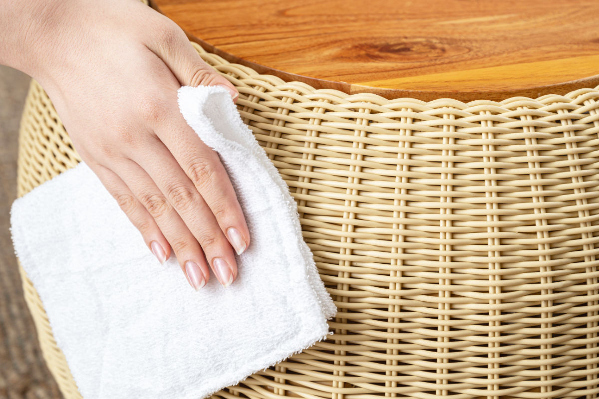 本体の素材にはポリプロピレンを使用しているため、水に濡れたり汚れたりしてもサッと拭きとれます。また、天板の表面にはラッカー塗装が施されているので、液体をこぼしてしまった時にはサッと拭けます。