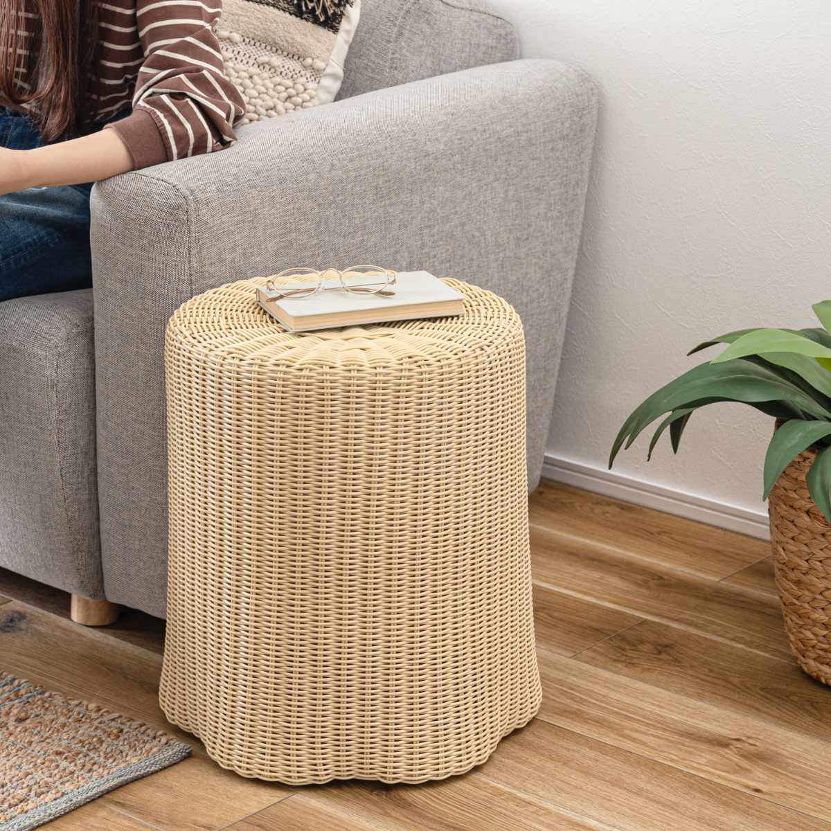 切り株風 スツール 座面高46cm ラタン調 ( 人工ラタン イス 丸椅子 籐椅子 腰掛け 籐 軽量 コンパクト 来客用 玄関 ナイトテーブル サイドテーブル ゆったり 背もたれなし 完成品 )