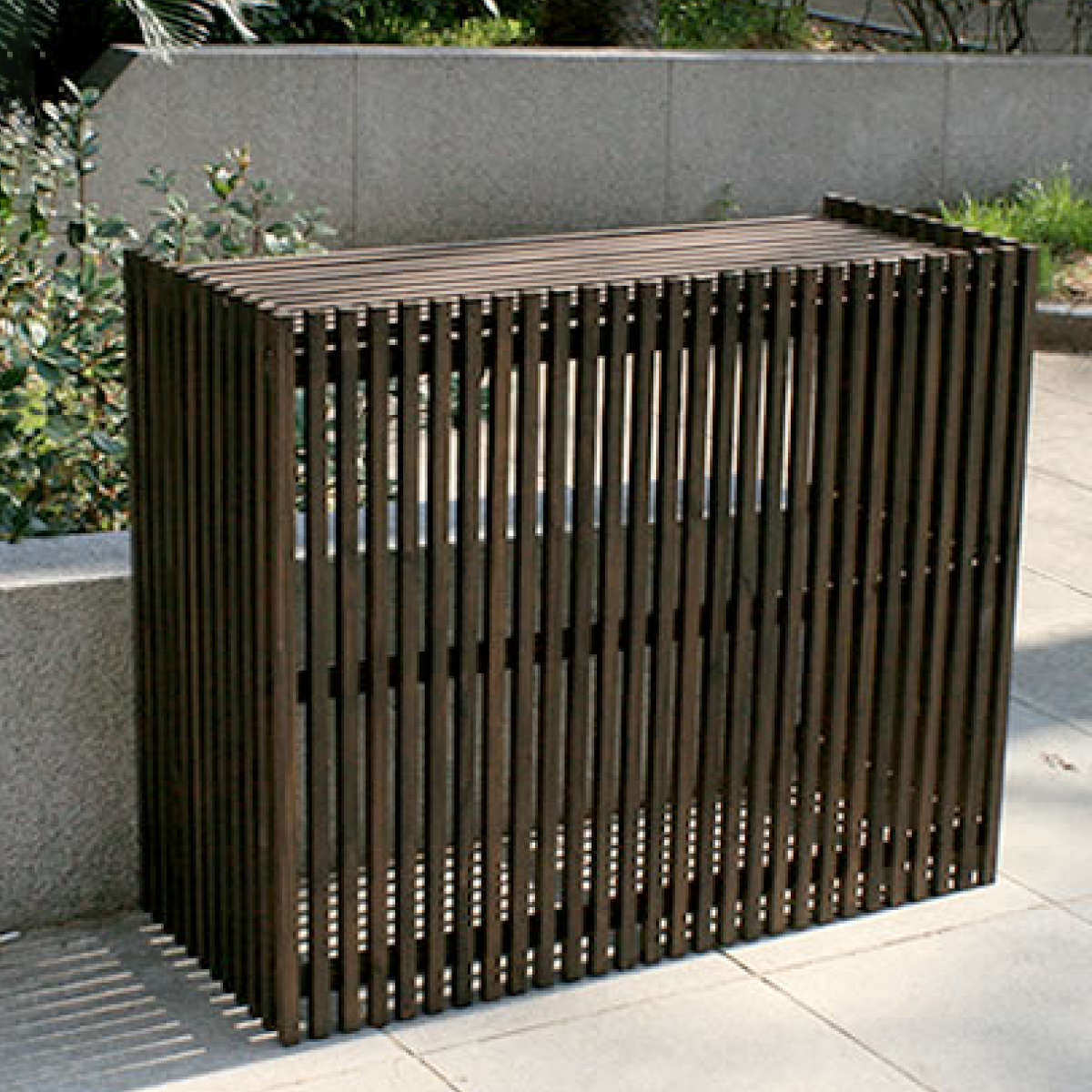 なかなかない縦ストライプのモダンなデザインは、和洋どんなテイストでもマッチします。お庭やベランダなど、場所を選ばず設置できます。大型室外機対応のビッグサイズです。