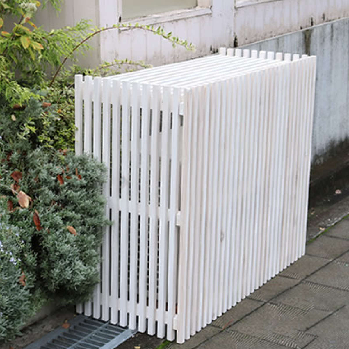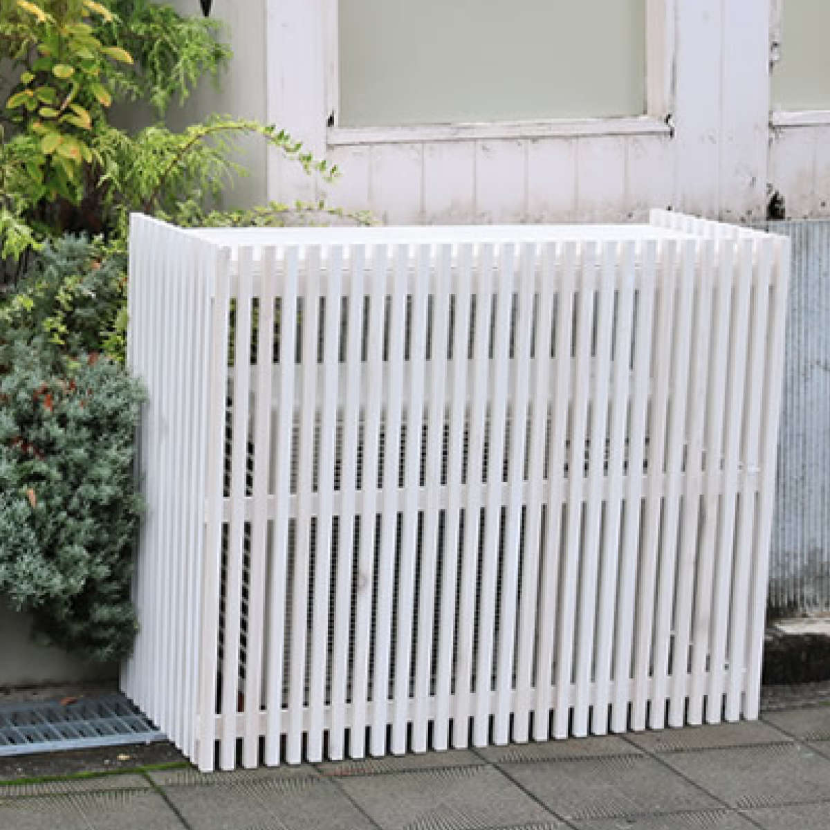 室外機カバー モダン エアコンカバー 大型 幅110cm ( エアコン室外機カバー 木製 格子 おしゃれ 日よけ 日光対策 直射日光 目隠し 室外機ラック エアコン 室外機 庭 ベランダ 省エネ 節電 簡単組立 軽い ) 【ホワイト】
