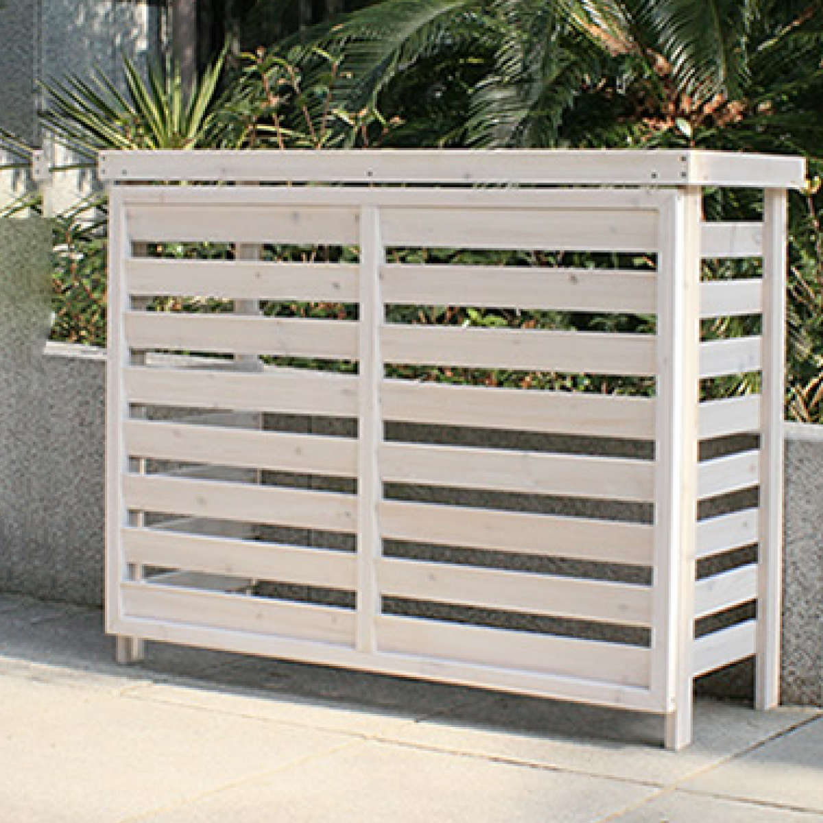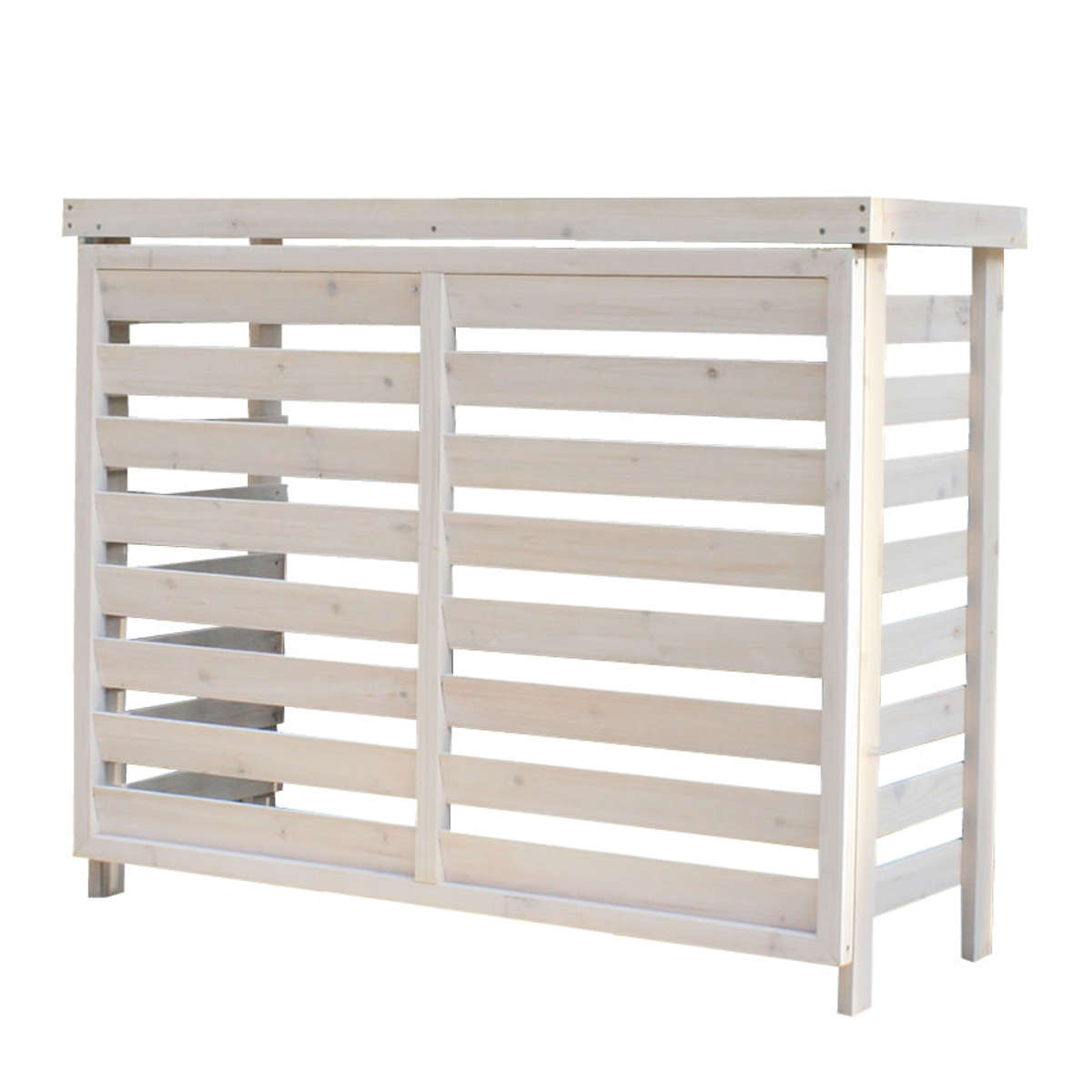 室外機カバー ボーダー室外機カバー 大型 幅110cm ( エアコン室外機カバー 木製 ルーバー 上向き おしゃれ 日よけ 日光対策 直射日光 目隠し 室外機ラック エアコン 室外機 庭 ベランダ 省エネ 節電 簡単組立 軽い ) 【ホワイト】