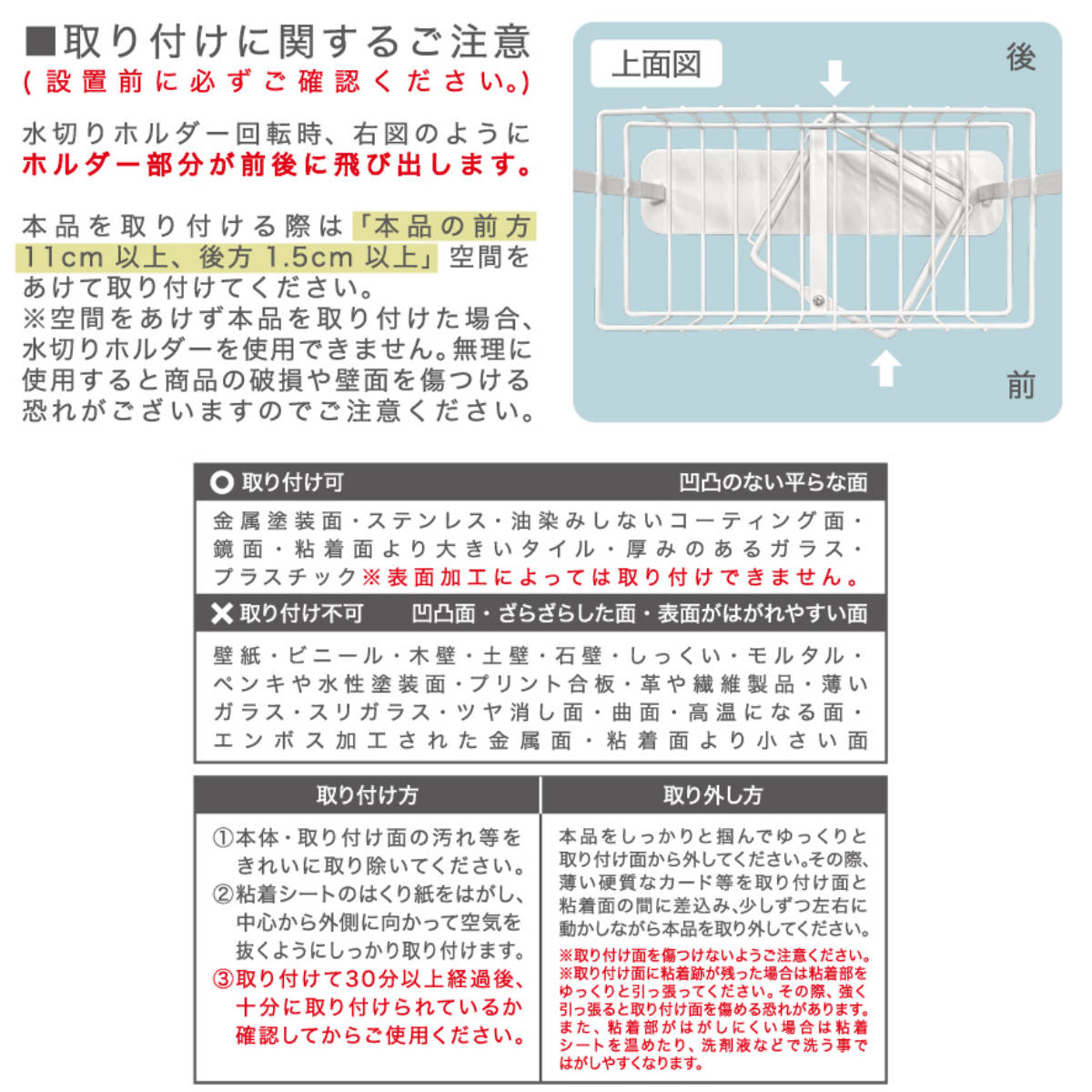 | 内容量 | 1個 付属品:水切りトレイ×1、粘着シート×2、ネジ×2、プラスドライバー×1 |