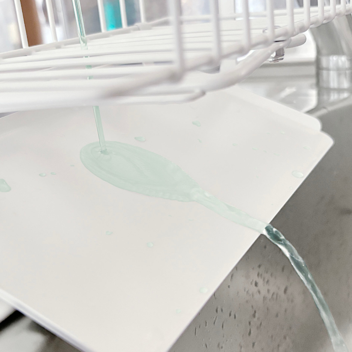 水切りトレイには、シンクに向かって自然に水滴が流れる傾斜が付いています。気になるカビやヌメリの発生を予防します。トレイの汚れが気になる時は、取り外して水洗いが可能です。