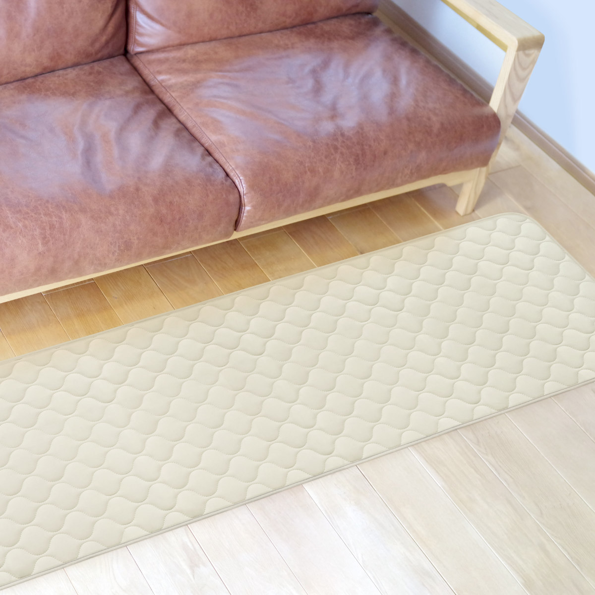 調理中で暑くなりがちなキッチンでの使用はもちろん、ソファやベッドの足元に敷くのもおすすめです。つい裸足で過ごしたくなります。